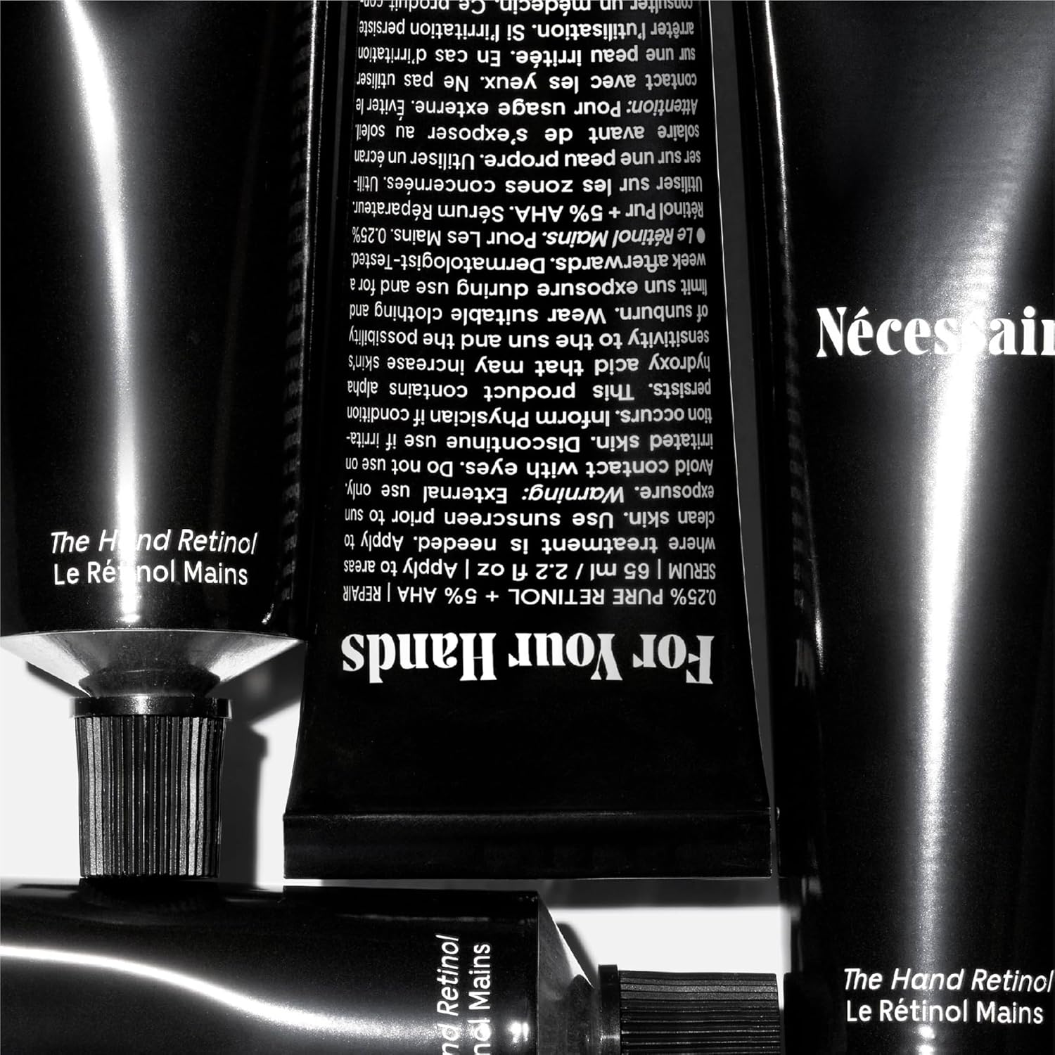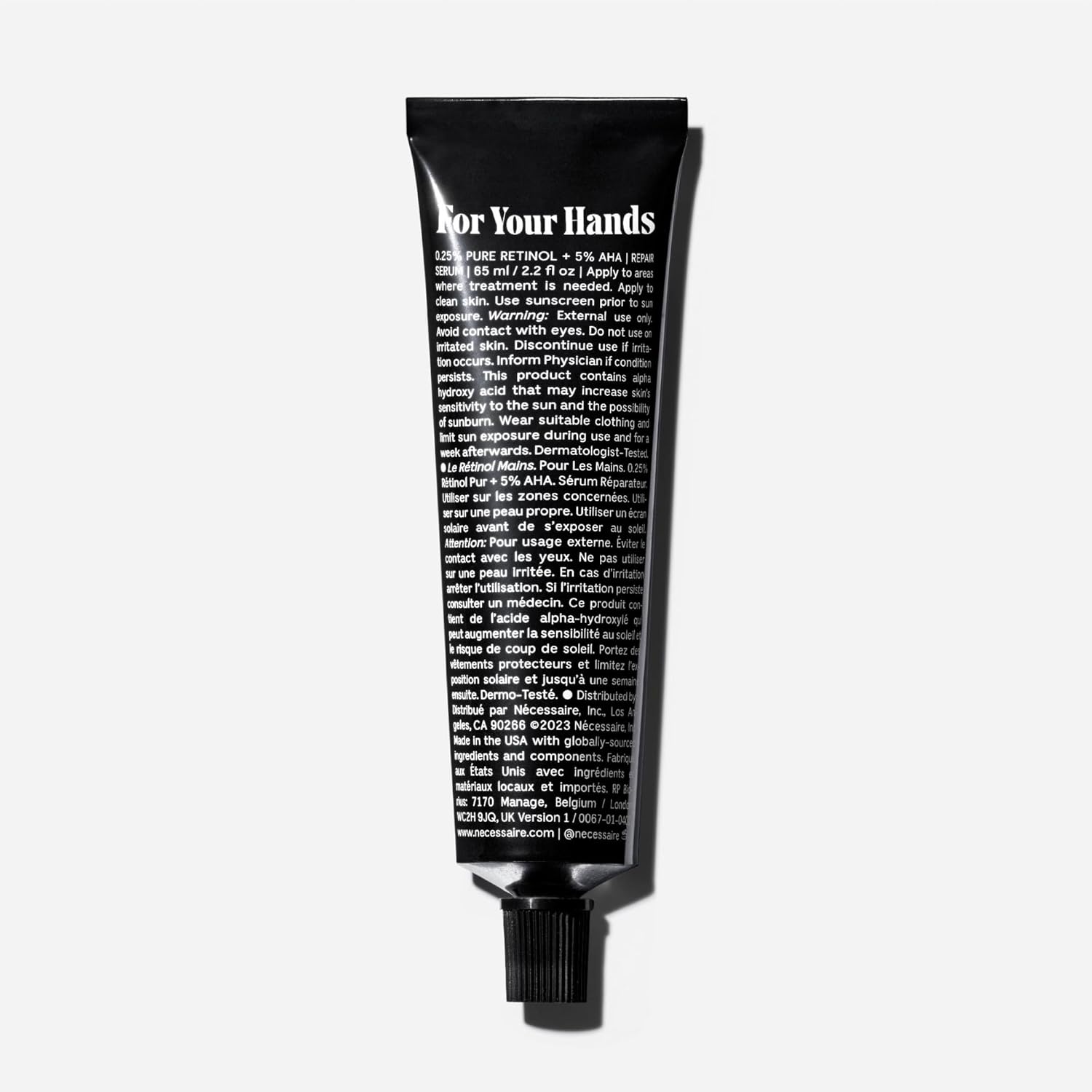 Nécessaire The Hand Retinol. Anti-Age Repair Serum. For Crepiness, Wrinkles, Spots, Brittle Cuticles. 0.25% Pure Retinol. 5% AHA. Dermatologist-Tested. Hypoallergenic. Non-Comedogenic.