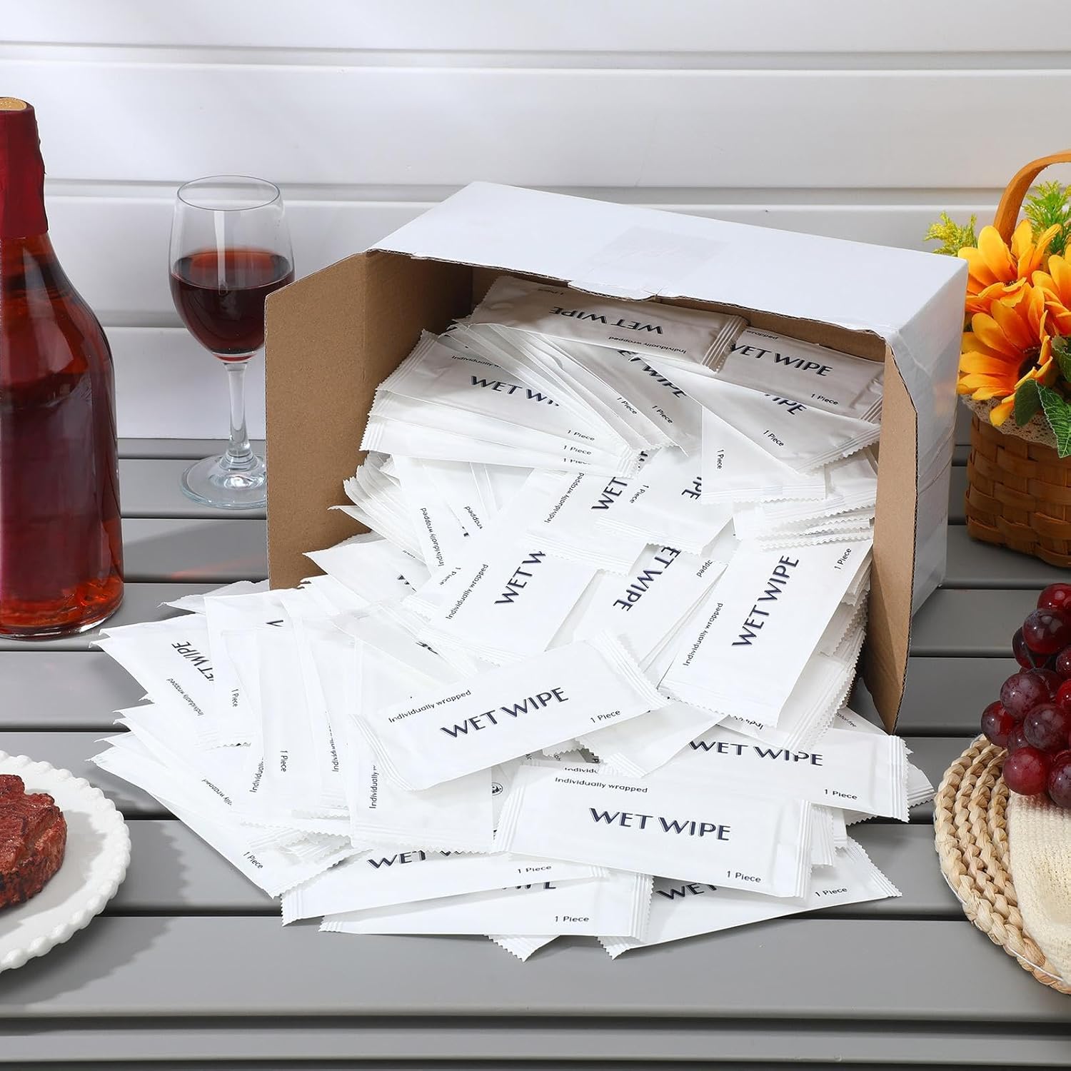 Timgle 300 Pack Individually Wrapped Wet Wipes Bulk Travel Size Unscented Hand Wipes Packets, Wet Napkins Clean Hands Quickly for Travel Homeless Restaurant Barbecue Wedding(White)