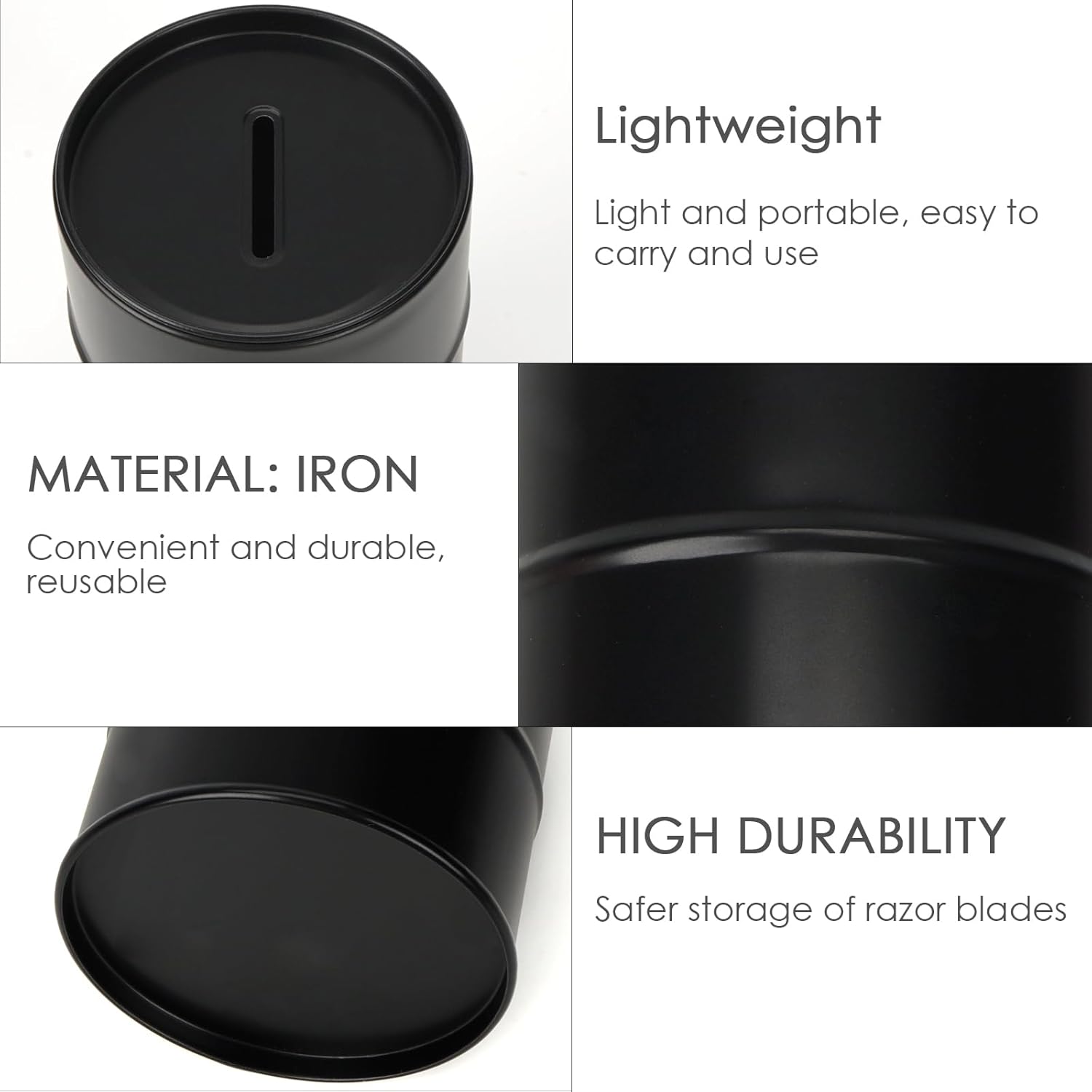 Linkidea Safety Razor Blade Disposal Container Box, Metal Razor Disposal Case Safe Bank for Storing Used Wasted Blades (Black)