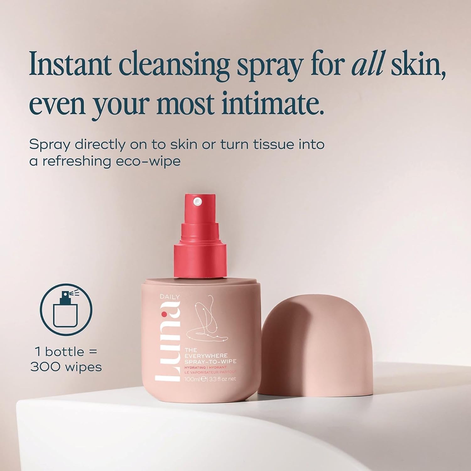 Luna Daily Body Cleansing Spray | Hydrating Feminine & Body Mist with Soft Cotton Scent | pH-Balanced, Gentle & Moisturizing | For Intimate Care, Underarms & Travel Freshness, 100ml
