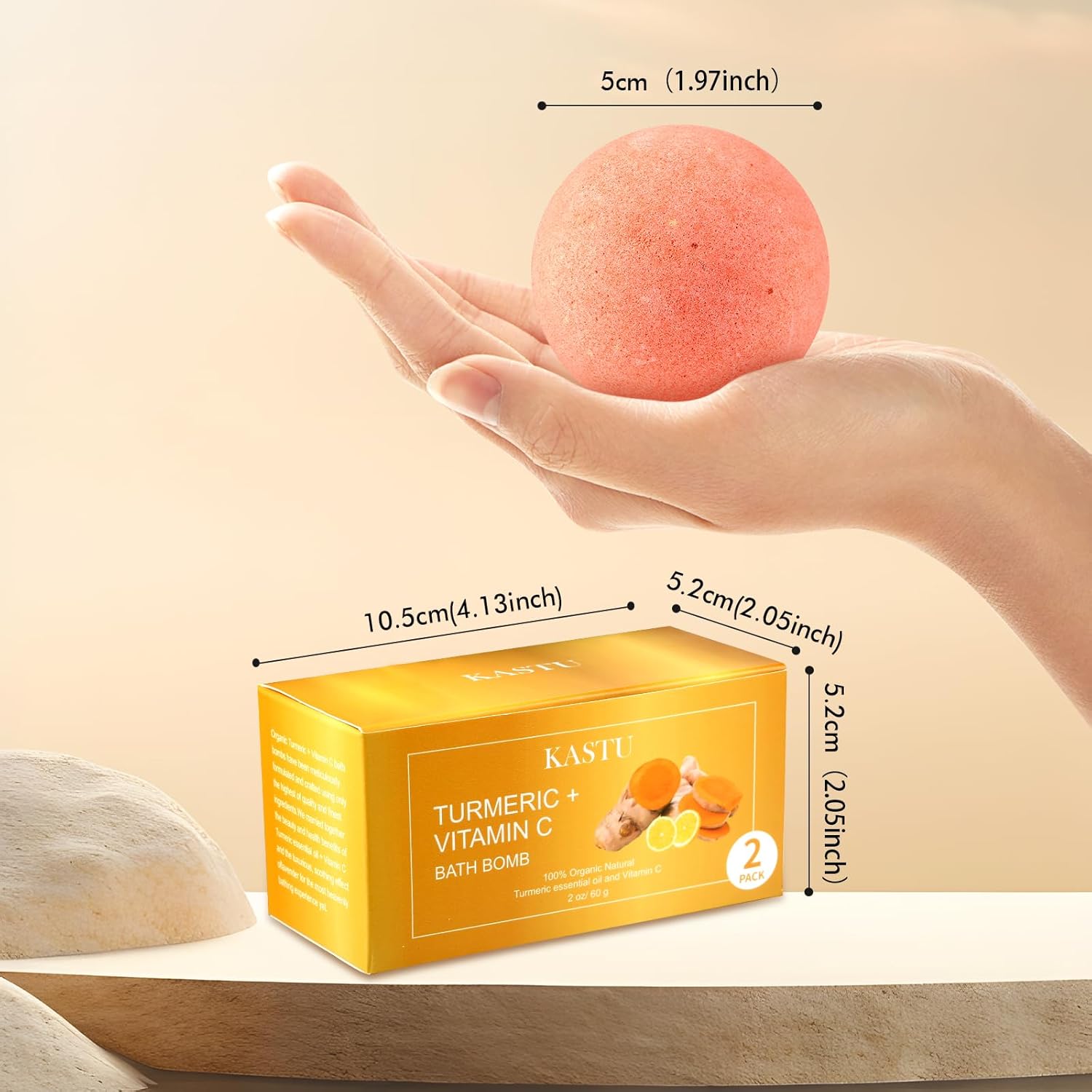 - 2 Pcs fizzy bath bombs, each designed to envelop you with Vitamin C Lemon and Turmeric.