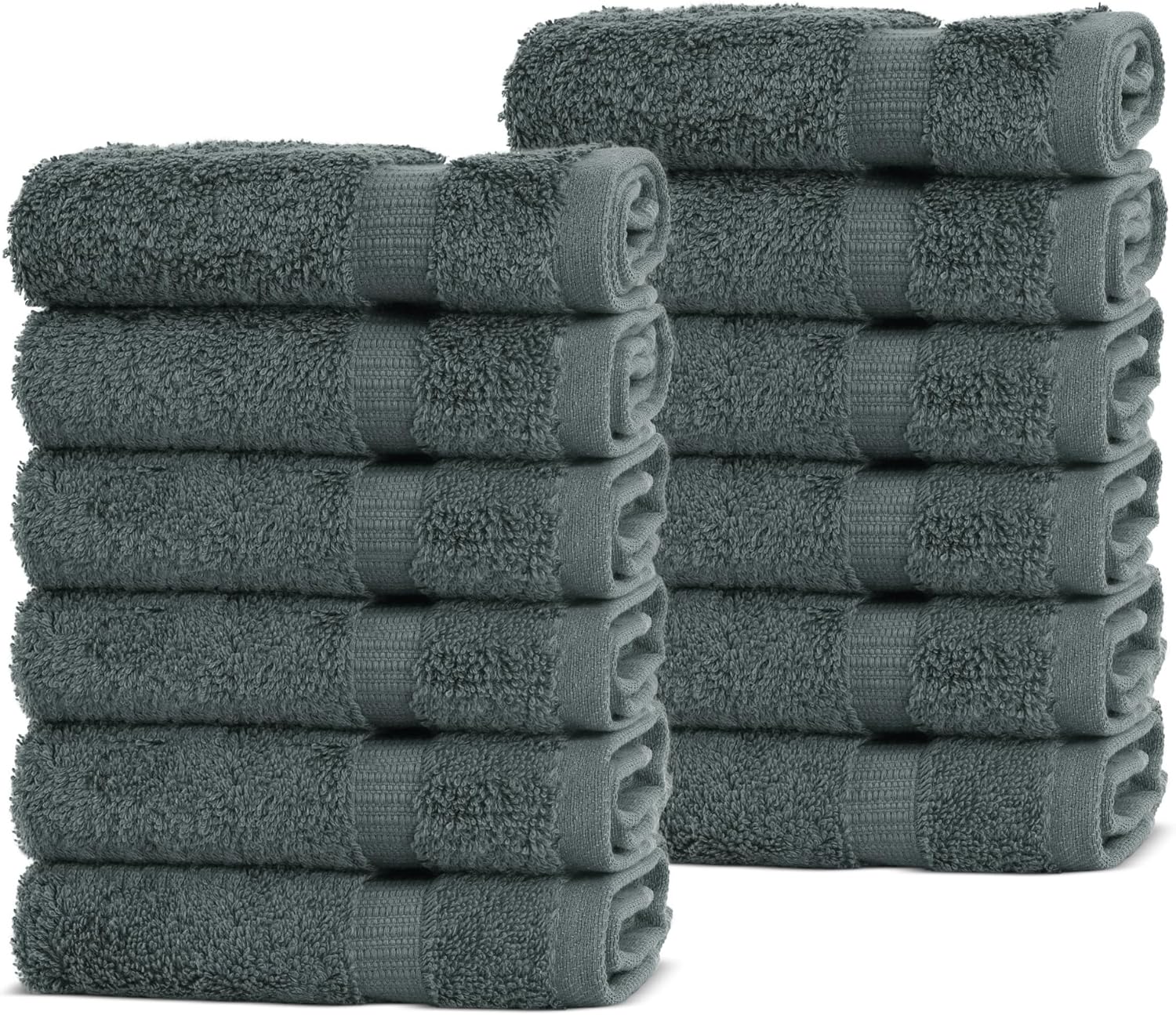 Chakir Turkish Linens | Hotel & Spa Quality 100% Cotton Premium Turkish Towels | Soft & Absorbent (12-Piece Washcloths, Dark Gray)