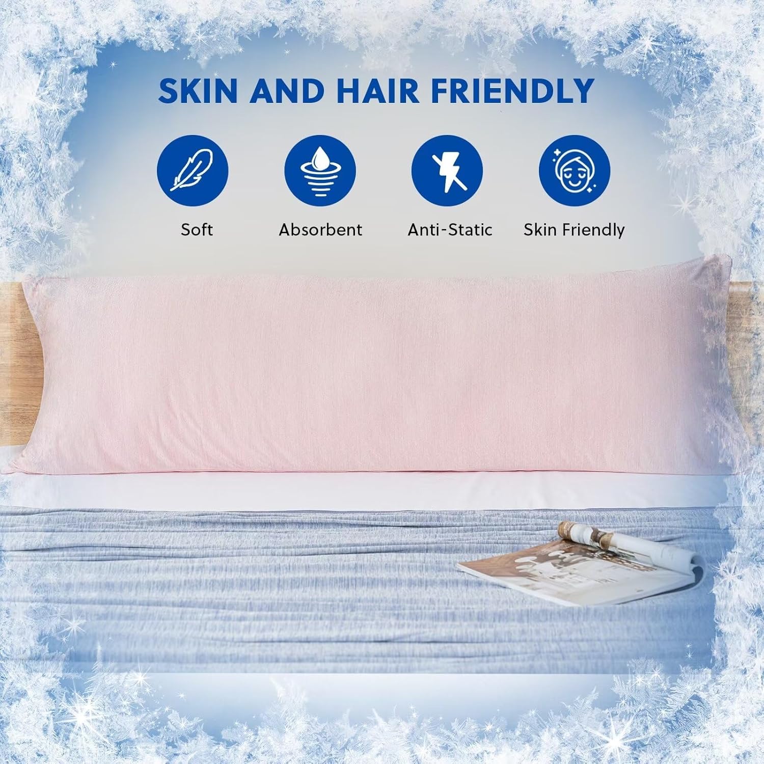 HOMFINE Cooling Pillowcase Body Size - Double Side Q-Max 0.439 Cooling Fiber for Pillow Protector, Breathable Long Cold Pillow Cover for Hot Sleeper Night Sweat, Hidden Zipper, 1 Pack (20"x54", Pink)
