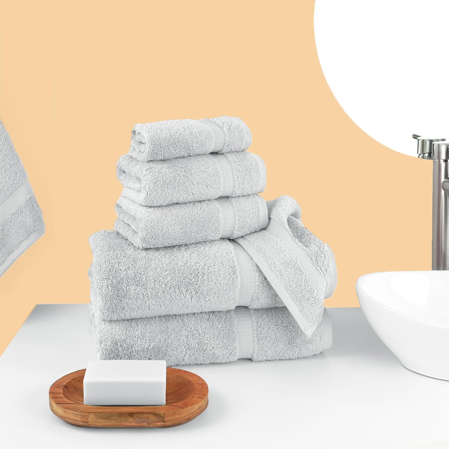 Chakir Turkish Linens Luxury Spa and Hotel Quality Premium Cotton 6-Piece Towel Set (2 x Bath Towels, 2 x Hand Towels, 2 x Washcloths, Silver Gray)