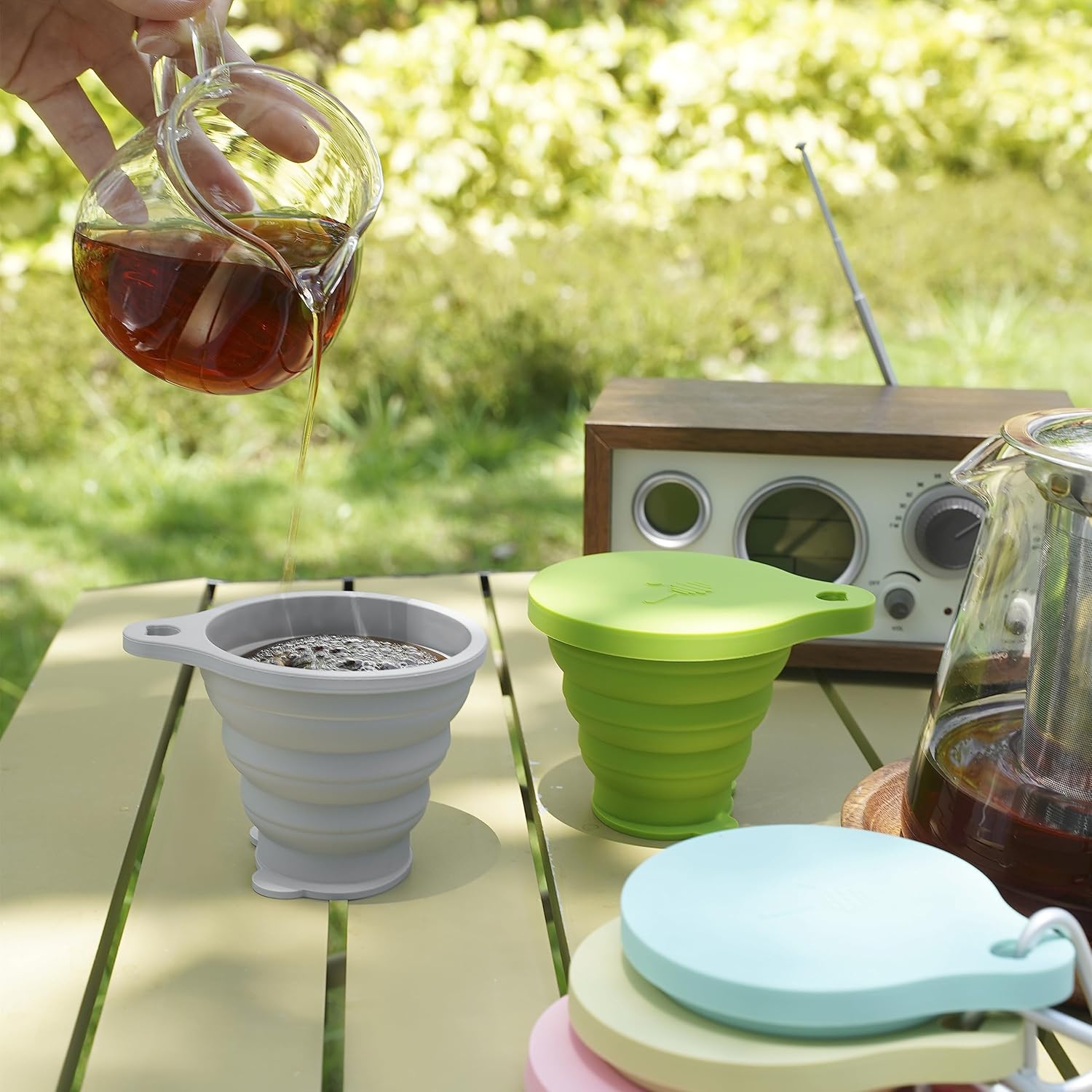 - 💧Upgrade & Thicken: Folding cups are made of food-grade silicone, BPA-free, non-toxic, odorless, durable, reusable. Heatproof from -40F to 446F, silicon cups are built to safely accommodate warm coffee as well as ice-cold beverages.