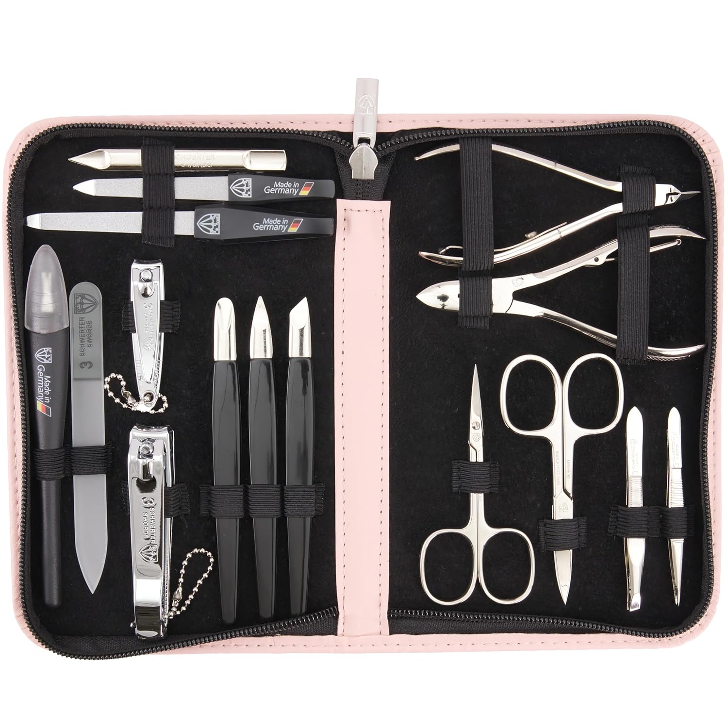 3 Swords Germany - brand quality 16 piece manicure pedicure grooming kit set fashion leather case light pink, Made in Germany