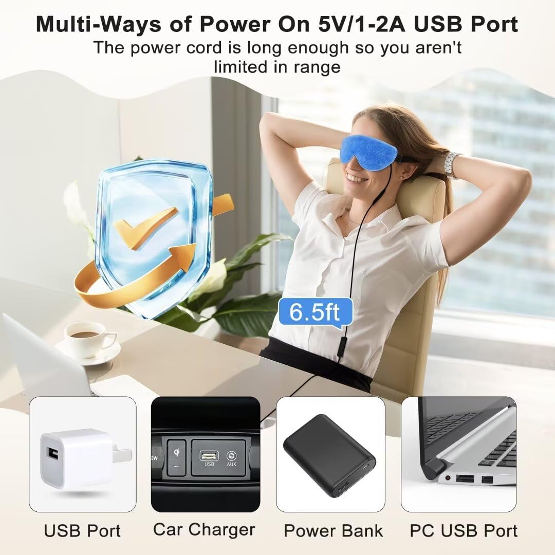 - SOFT TOUCH TO THE EYES: The dry eye mask contains reusable heatable natural flaxseed padding that matches our orbital bones perfectly, the perfect fit better conducts heat to the eye skin and penetrates heat deeper into the subcutaneous tissues, making it more effective in promoting blood circulation around the eyes. The warm compress for eyes comes with a 6.5-foot USB power cord. This cord is compatible with most 5V / 1-2A USB outlets, including wall chargers, laptops, power banks, and so on.