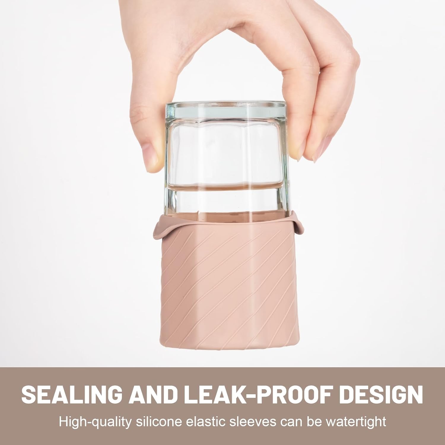 - EASY TO INSTALL: Put this leak-proof sleeve on bottles that are prone to leakage. It can be firmly fixed on the containers of toiletries and other beauty and personal care products. The silicone material can absorb the bottle to prevent leakage during travel and contamination of your Other items.
