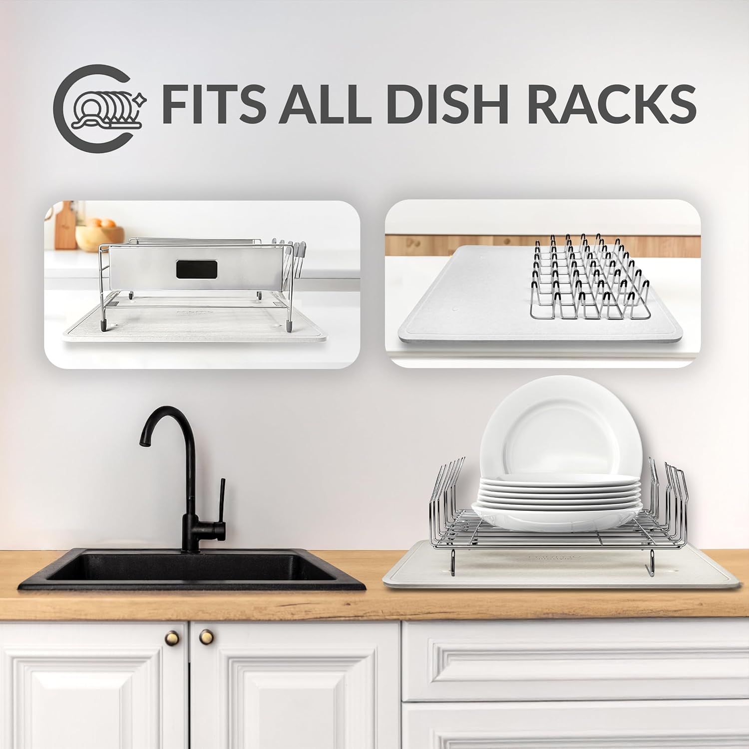 - VERSATILE: The 19.7" X 15.75" drying mat kitchen counter stone increases water absorption, fits various dish racks, and serves as a luxurious standalone mat. It swiftly organizes and dries your kitchenware.