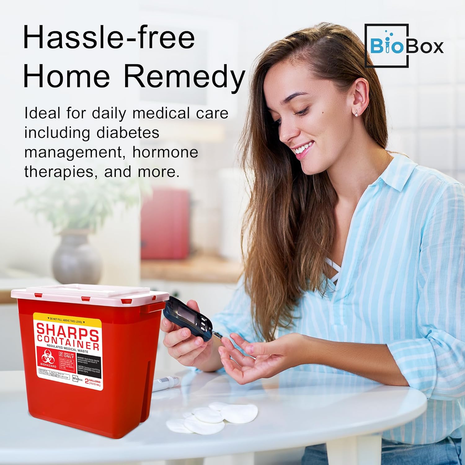 Sharps Container Large - Sharps Containers for Home Use and Labs - Portable Needle Disposal and Travel Size Biohazard Bin - 2 Gallon (Pack of 2)
