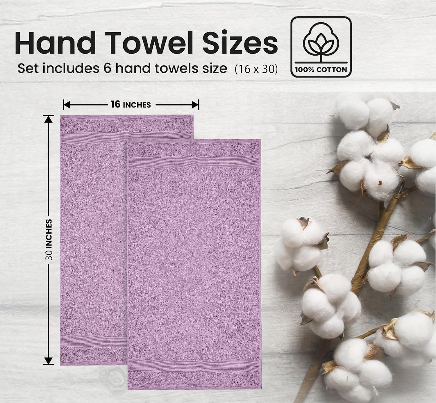 Premium Hand Towels Pack of 6 (16" x 30”) 100% Combed Ring Spun Cotton | Highly Absorbent Hand Towels Set | Ultra Soft for Home, Gym & Spa (Purple Ash)