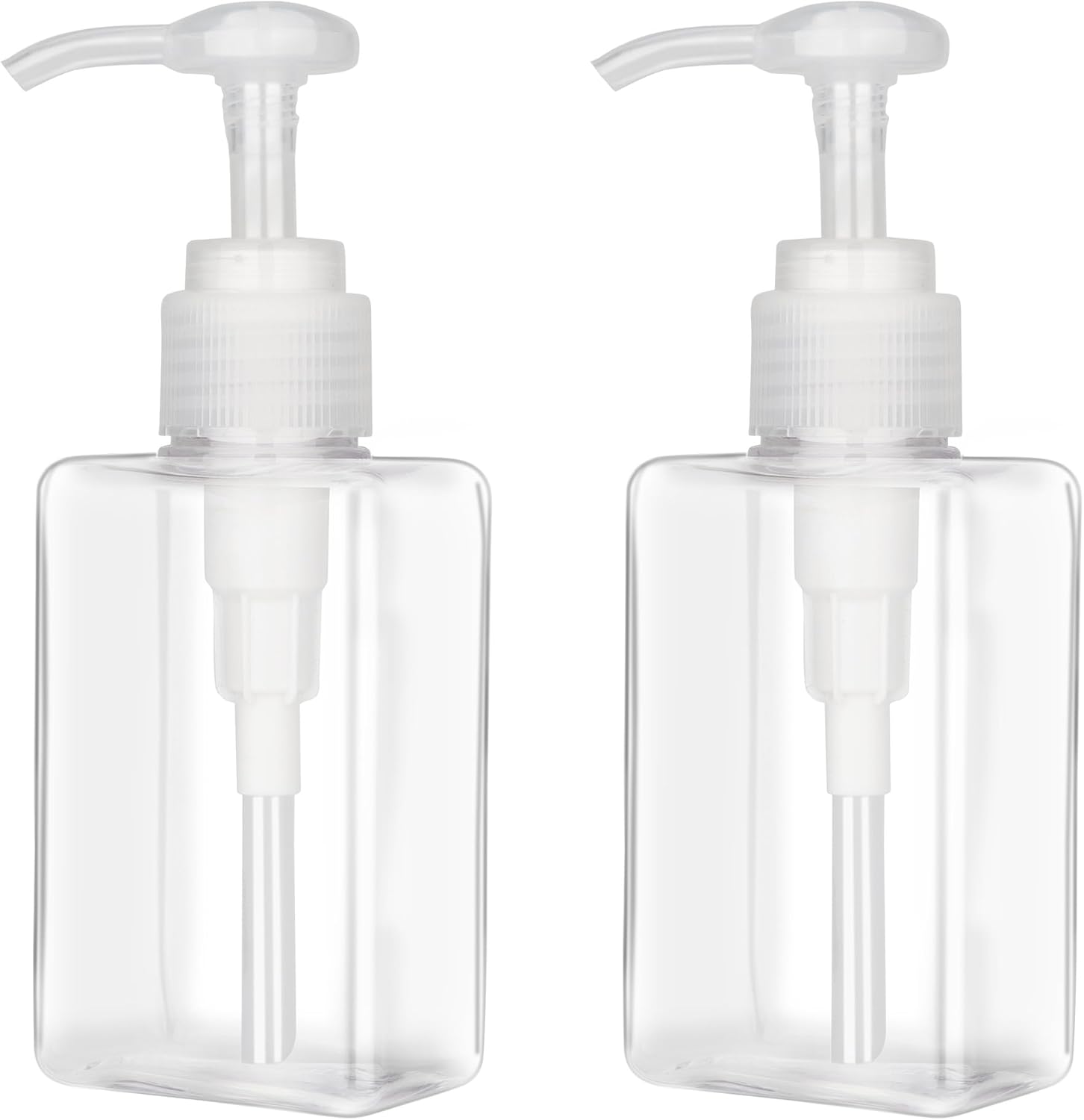 150ml (5.1oz) Pump Bottle Dispenser Jansburg 2 Pack Refillable Flat Square Plastic Lotion Dispenser Leakproof Empty Lotion Pump Bottle for Essential Oil Soap Lotion Shampoo Clear