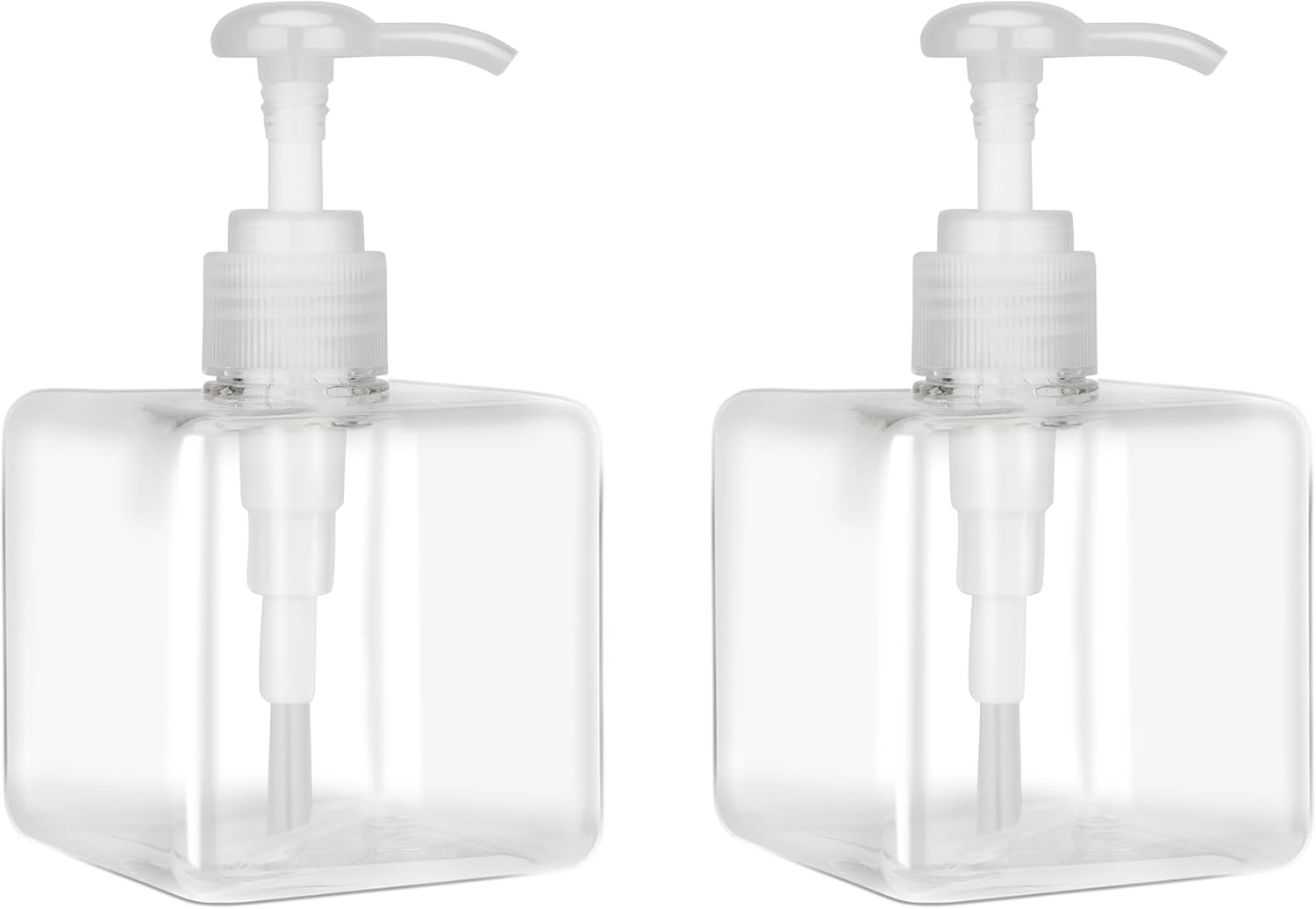 250ml (8.5oz) Pump Bottle Dispenser Jansburg 2 Pack Refillable Square Plastic Lotion Dispenser Empty Lotion Pump Bottle for Essential Oil Soap Lotion Shampoo Bathroom Travel Clear