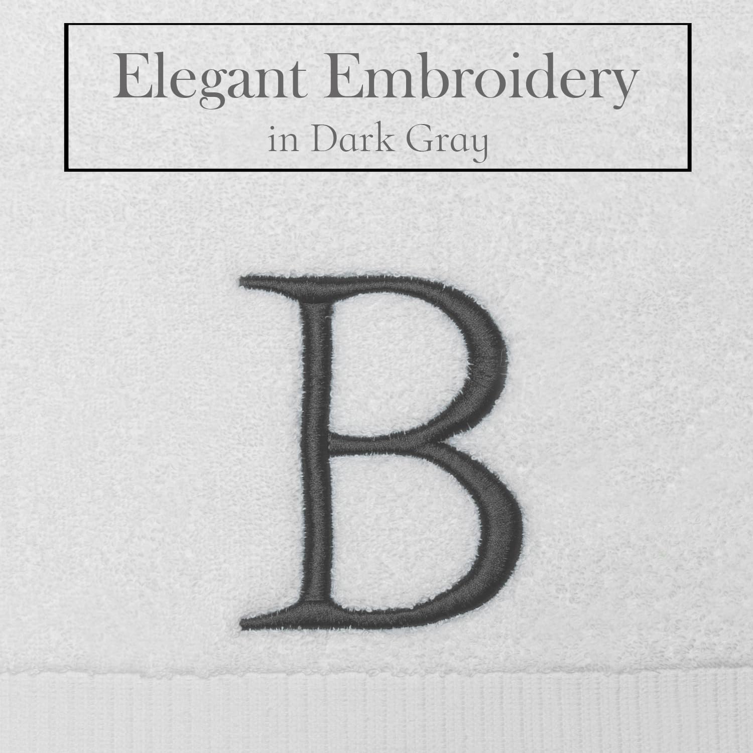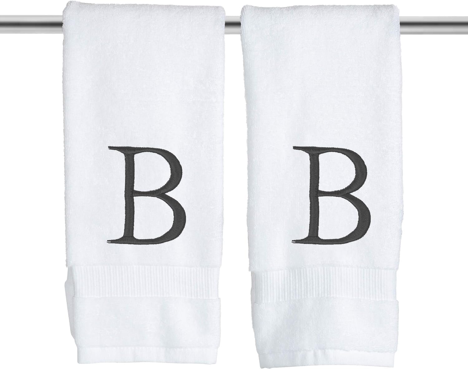Dark Gray and White Bathroom Hand Towel - Monogrammed Luxury Hotel Quality Decorative Embroidered Towel for Powder Room, Spa - GOTS Organic Certified - Pack of 2, Letter B