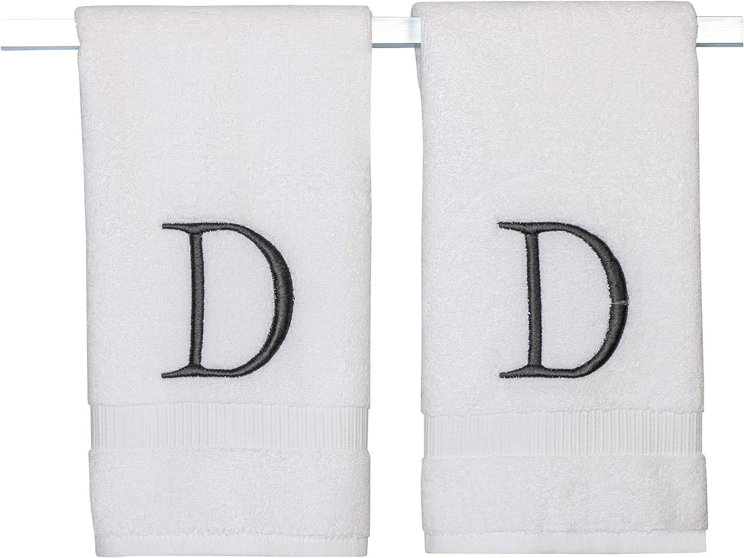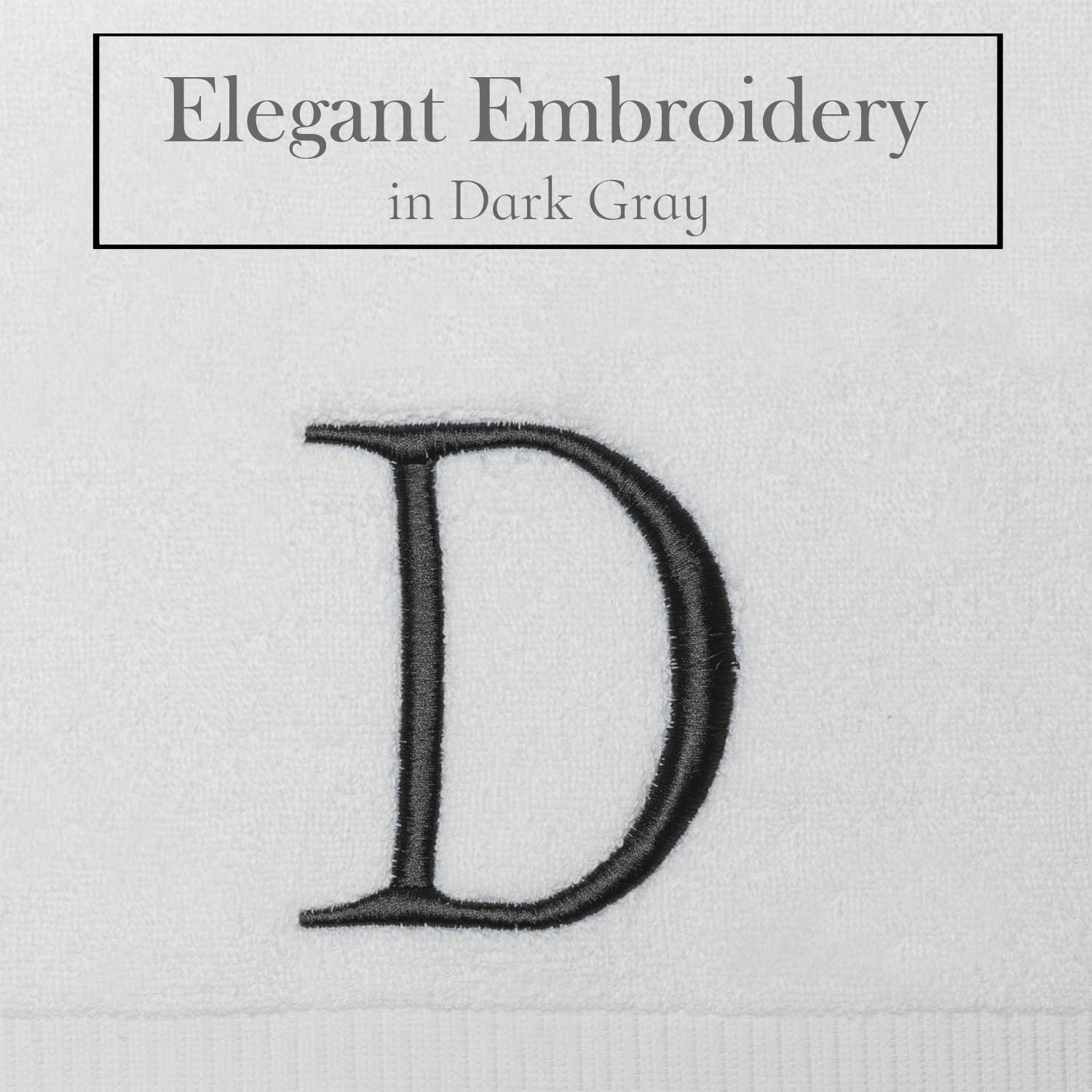 Dark Gray Luxury Hand Towel for Bathroom - Monogrammed Initial Hotel Quality Decorative Embroidered Towel for Powder Room, Spa - GOTS Organic Certified - Pack of 2, Letter D