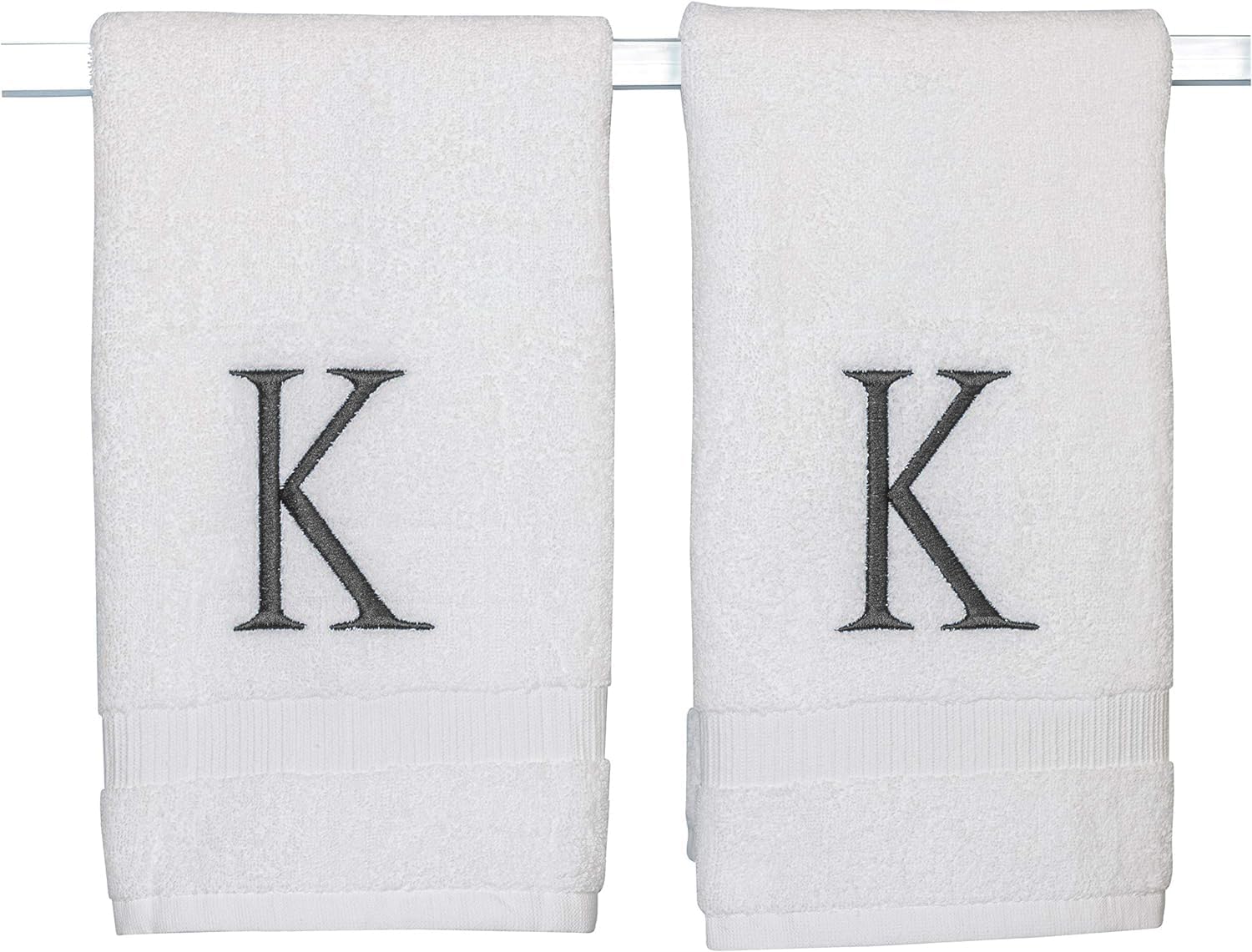 Dark Gray Monogrammed Hand Towels for Bathroom - White Luxury Hotel Quality Personalized Initial Decorative Embroidered Towel for Powder Room, Spa-GOTS Organic Certified - Pack of 2, Letter K