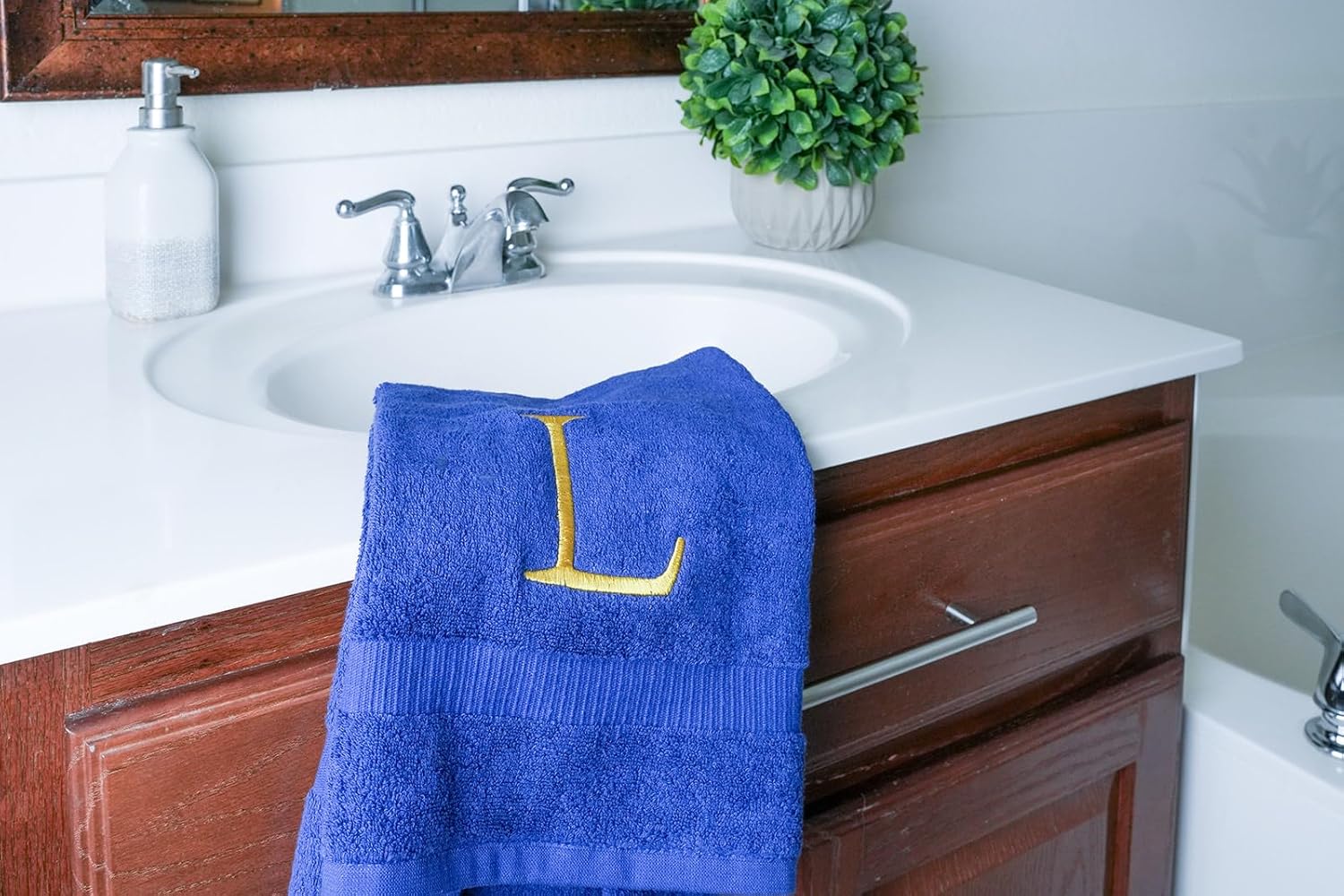 - Premium Quality - High quality durable soft rich monogram letter hand towels in navy cotton with gold stitching