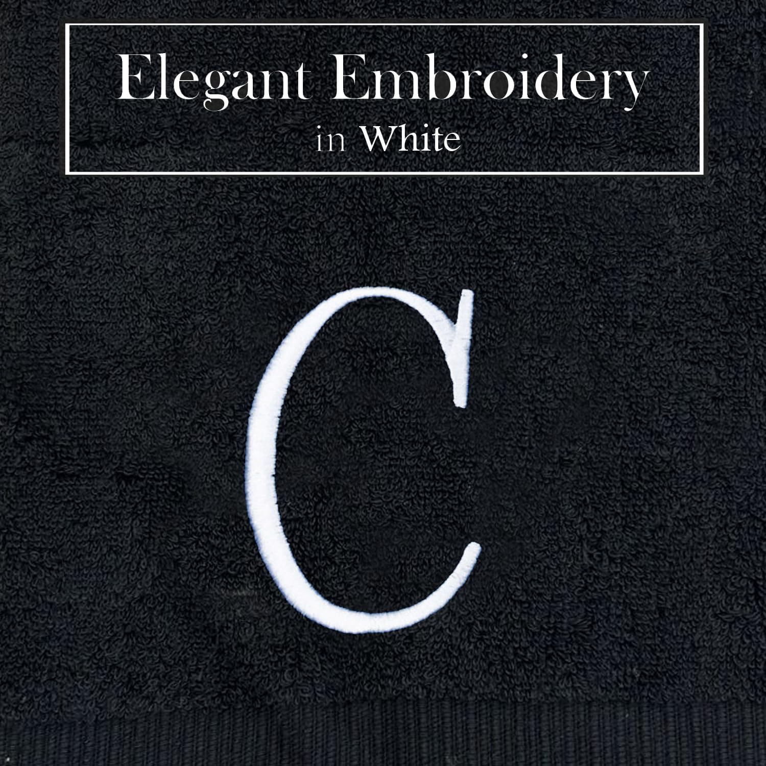 Black Initial Hand Towel for Bathroom - Monogrammed Luxury Hotel Quality Decorative Embroidered Towel for Powder Room, Spa - GOTS Organic Certified - Pack of 2 - Letter C