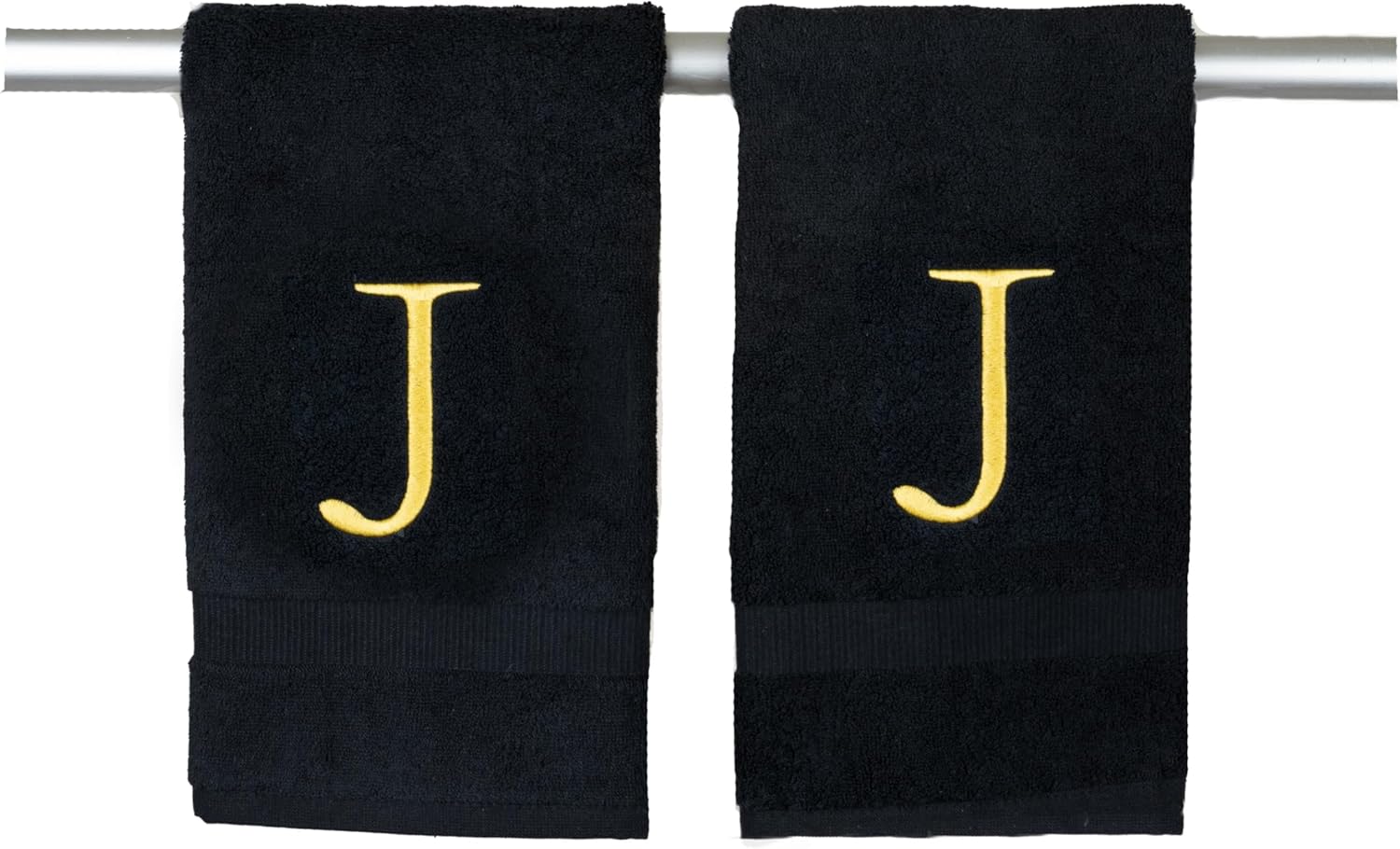 Black, Letter Hand Towel for Bathroom - Monogrammed Initial Hotel Quality Decorative Embroidered Towel for Powder Room, Spa - GOTS Organic Certified - Pack of 2, Letter J