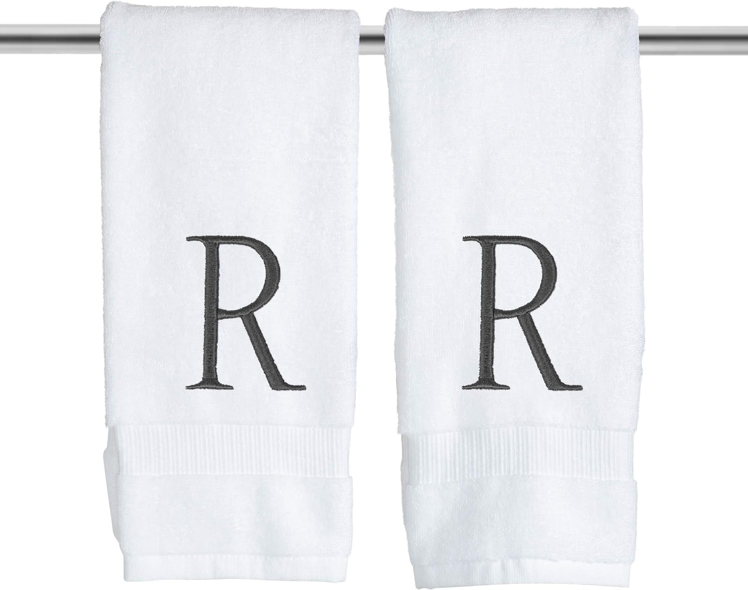 White Monogrammed Hand Towel - Monogram Initial Hotel Quality Decorative Embroidered Luxury Towel for Powder Room, Spa - GOTS Organic Certified - Set of 2 Dark Gray Letter R