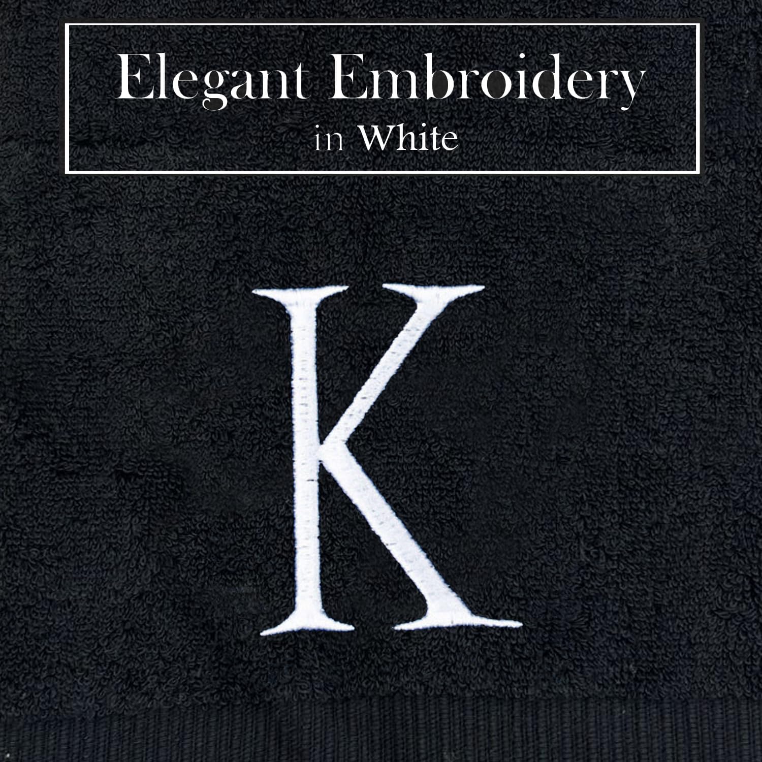 Black Monogrammed Hand Towels for Bathroom- Black and White Luxury Hotel Quality Personalized Initial Decorative Embroidered for Powder Room, Spa-GOTS Organic Certified - Pack of 2, Letter K