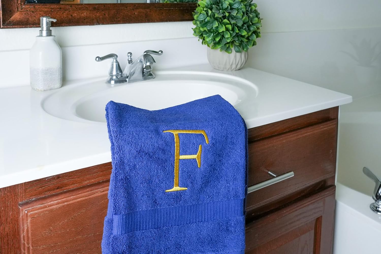 - Premium Quality - High quality durable soft rich monogram letter hand towels in navy cotton with gold stitching