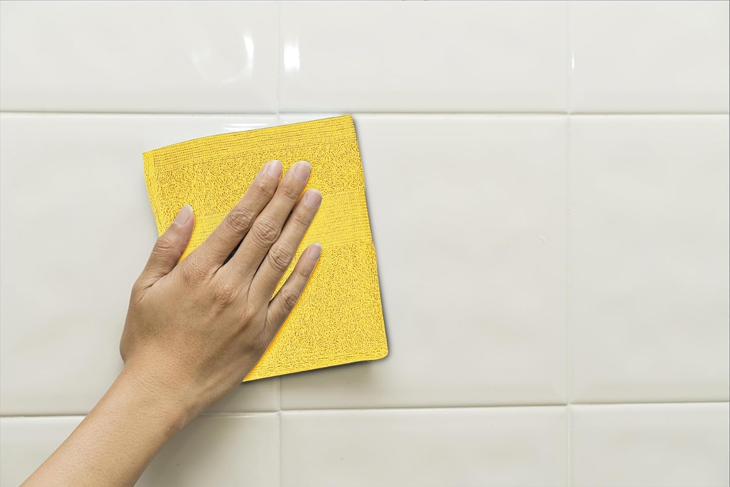 Premium Wash Cloths Pack of 12 (13" x 13") 100% Ring Spun Cotton | Luxury Washcloths | Ultra Soft Face Towels | Highly Absorbent Wash Cloths for face (Yellow)