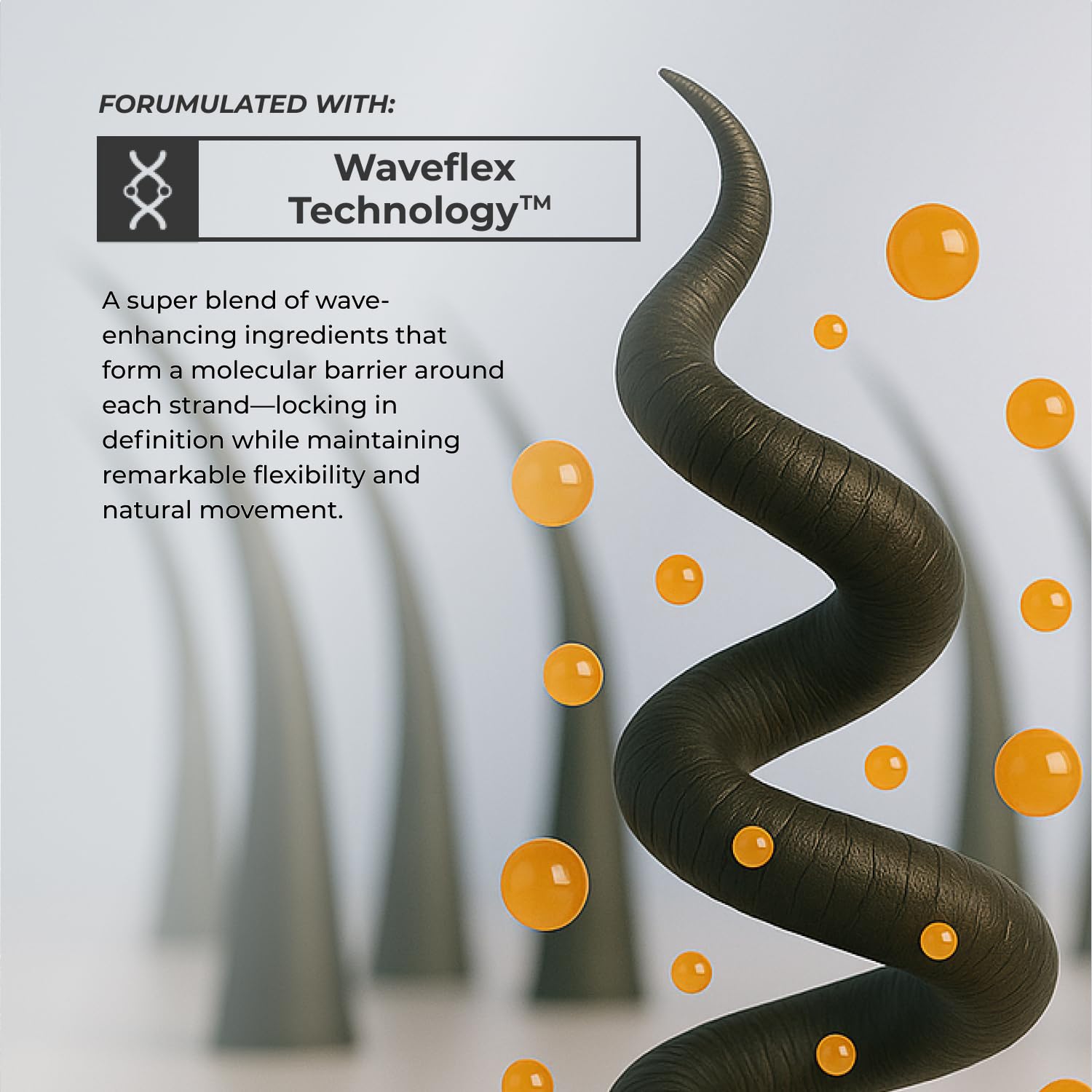 - WAVEFLEX TECHNOLOGY - a super blend of wave forming ingredients that create a molecular barrier on the hair strand for defined waves with remarkable flexibility.