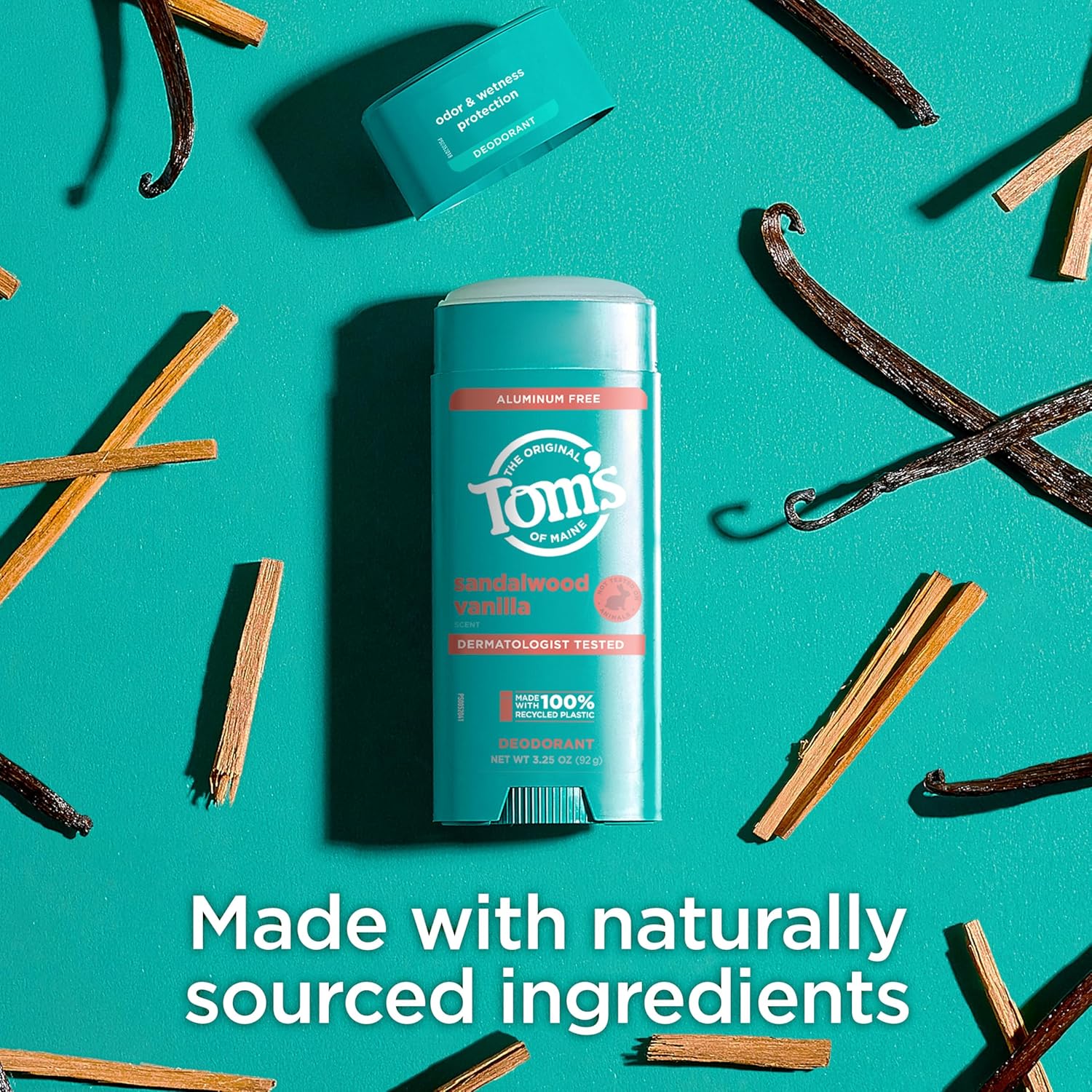 - WHAT'S INCLUDED: Two (2) 3.25 oz Tom's of Maine Sandalwood Vanilla natural underarm deodorant for women and men