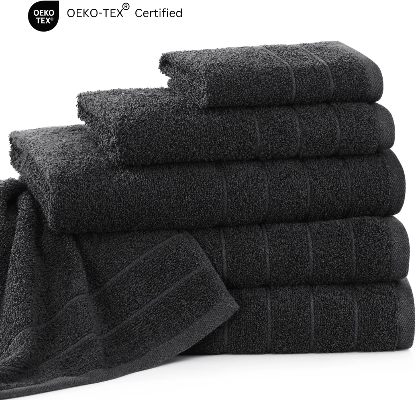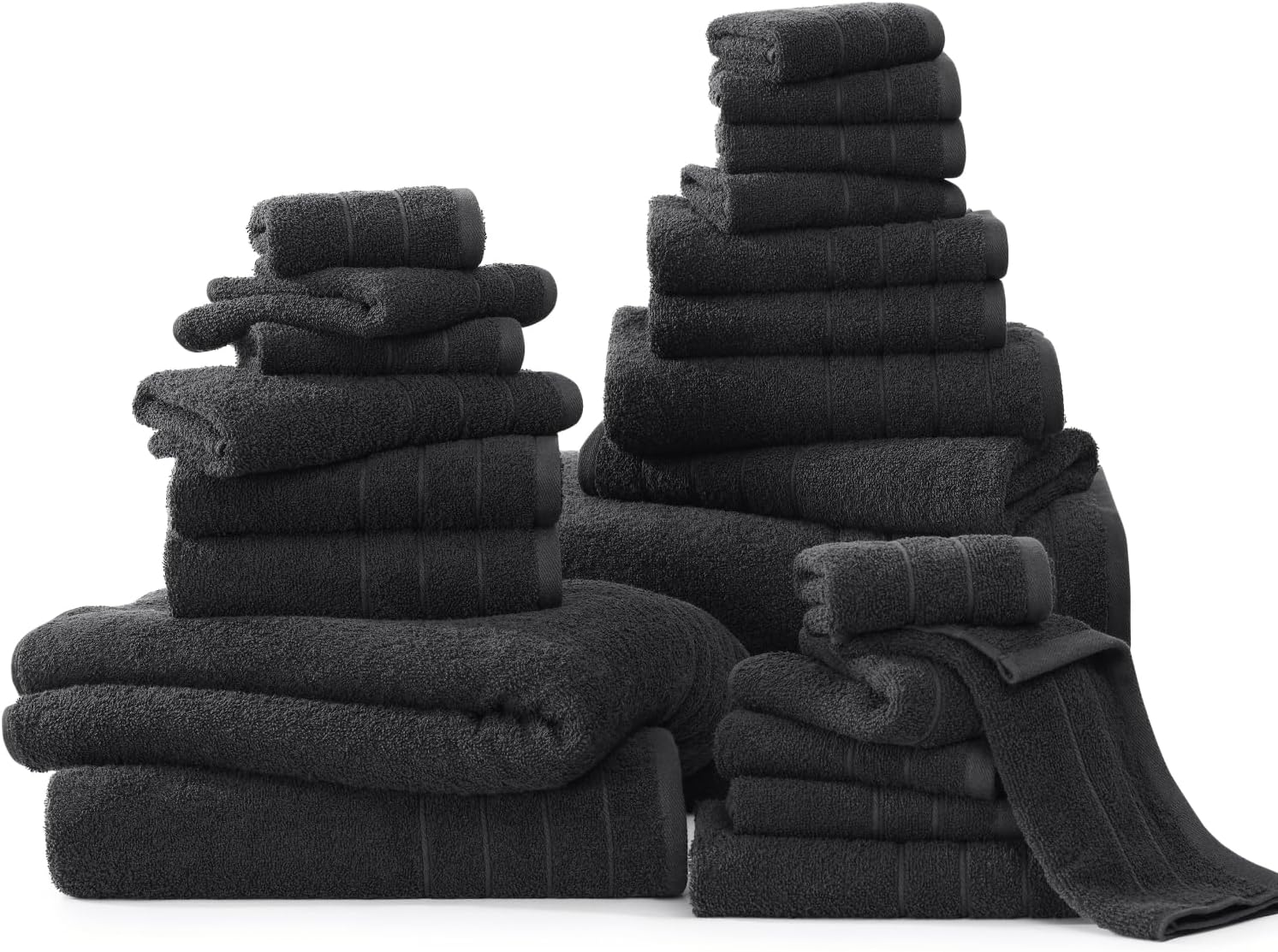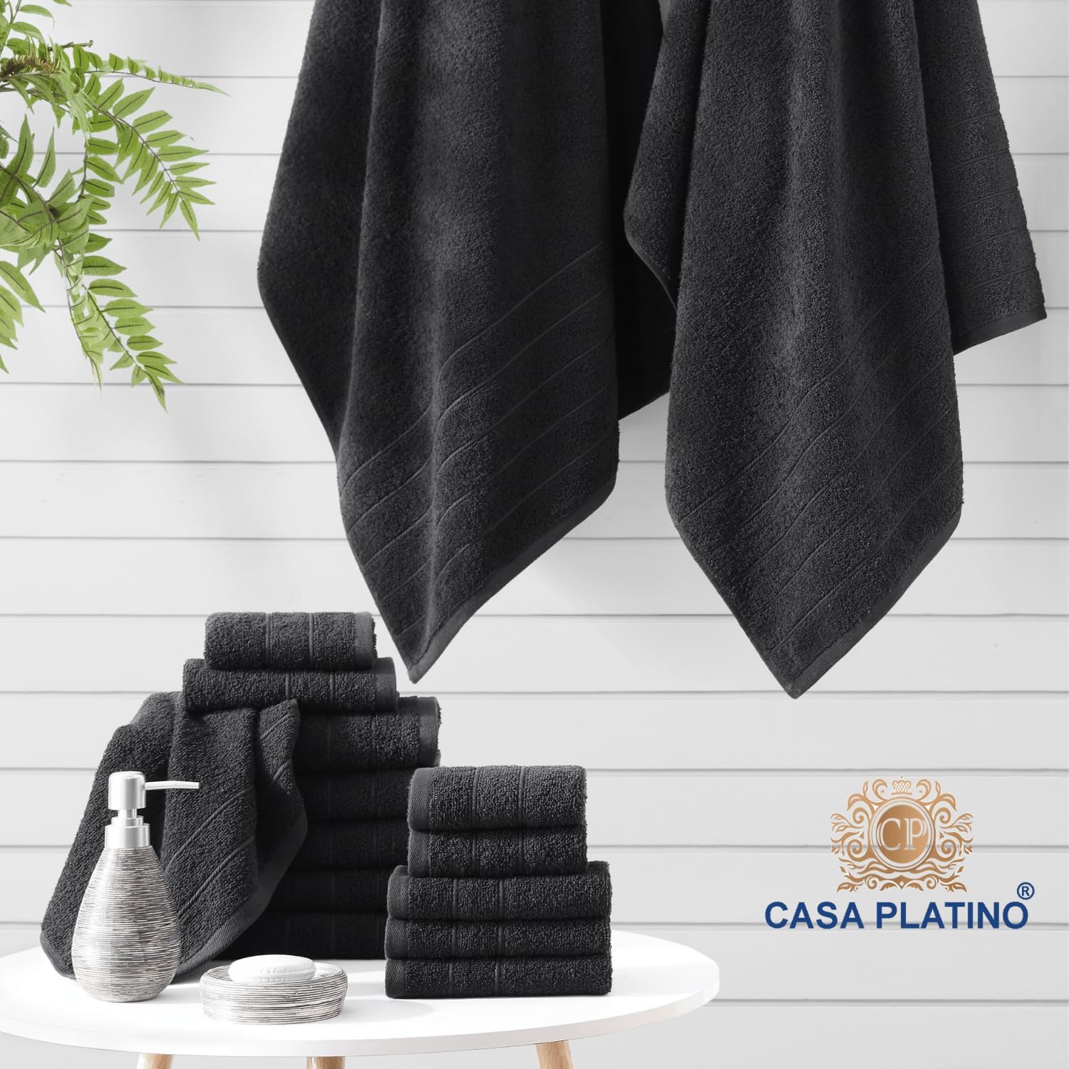 Casa Platino Cotton Towel Set 24 Pc – Quick Dry, Pre-Shrunk, Soft Ring Spun Towels for Bathroom, Large Bath Sheets to Washcloths, Machine Washable, Great Gift Set – Black