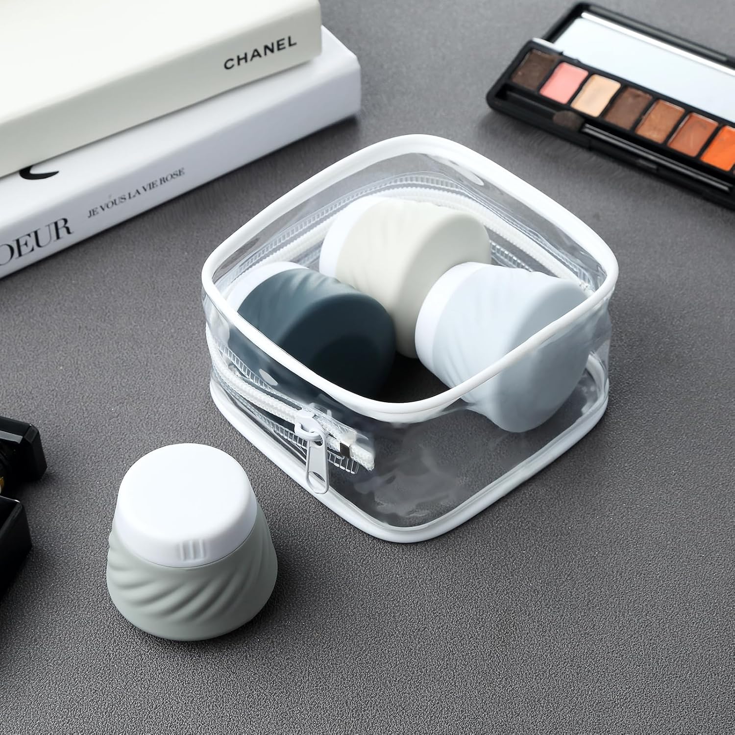 Gemice TSA Approved Travel Containers for Toiletries, 4 Pack Silicone Cream Jars with Convenient Toiletry Bag, Leak-proof Wide Mouth Travel-Size Toiletries Containers with Lid for Cosmetic Cream