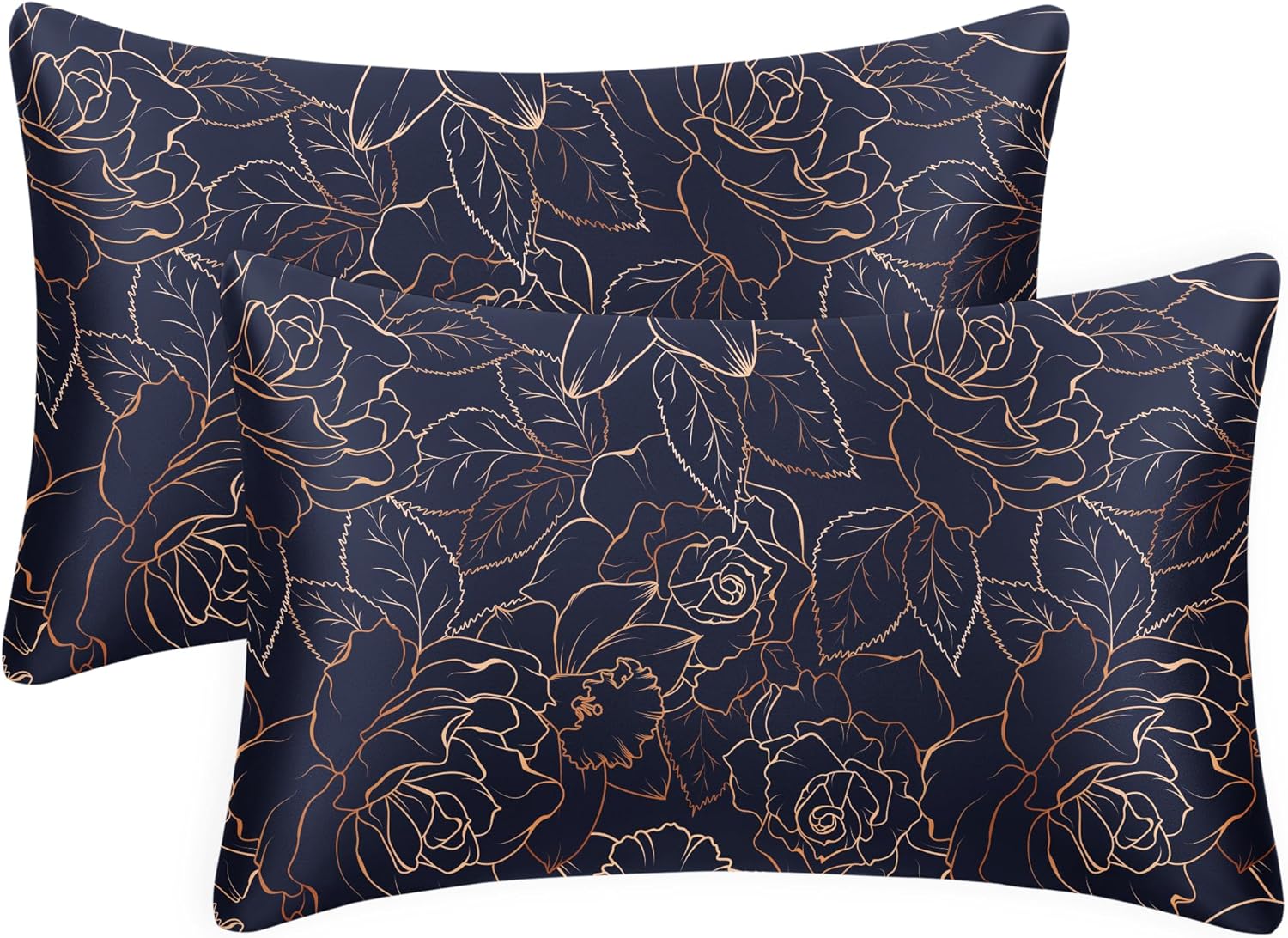EXQ Home Satin Pillowcase for Hair and Skin Queen - Printed Blue Rose Silk Pillowcase 2 Pack 20x30 inches - Satin Pillow Cases Set of 2 with Envelope Closure, Gifts for Women Men