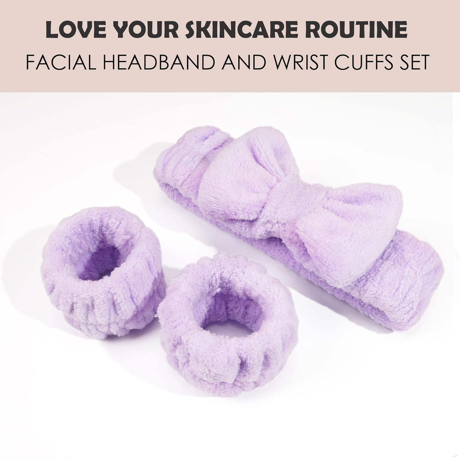 - Spa Headband and Wristband - The set contains 1pairs Face Washing Wristbands and 1 headband ,Unlike other face wash headband styles, this face washing headband includes 1 pairs matching scrunchies that prevents water from running down your arms and can also be used to tie your hair back