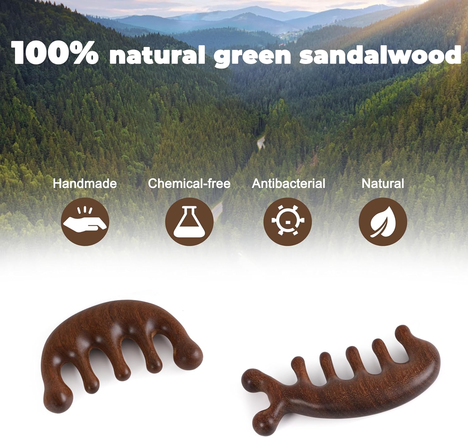 - NATURAL MATERIAL: The scalp massager wood is made of 100% natural green sandalwood with a unique sandalwood scent, can massage many parts of the neck and head, etc., take care of the skin better.