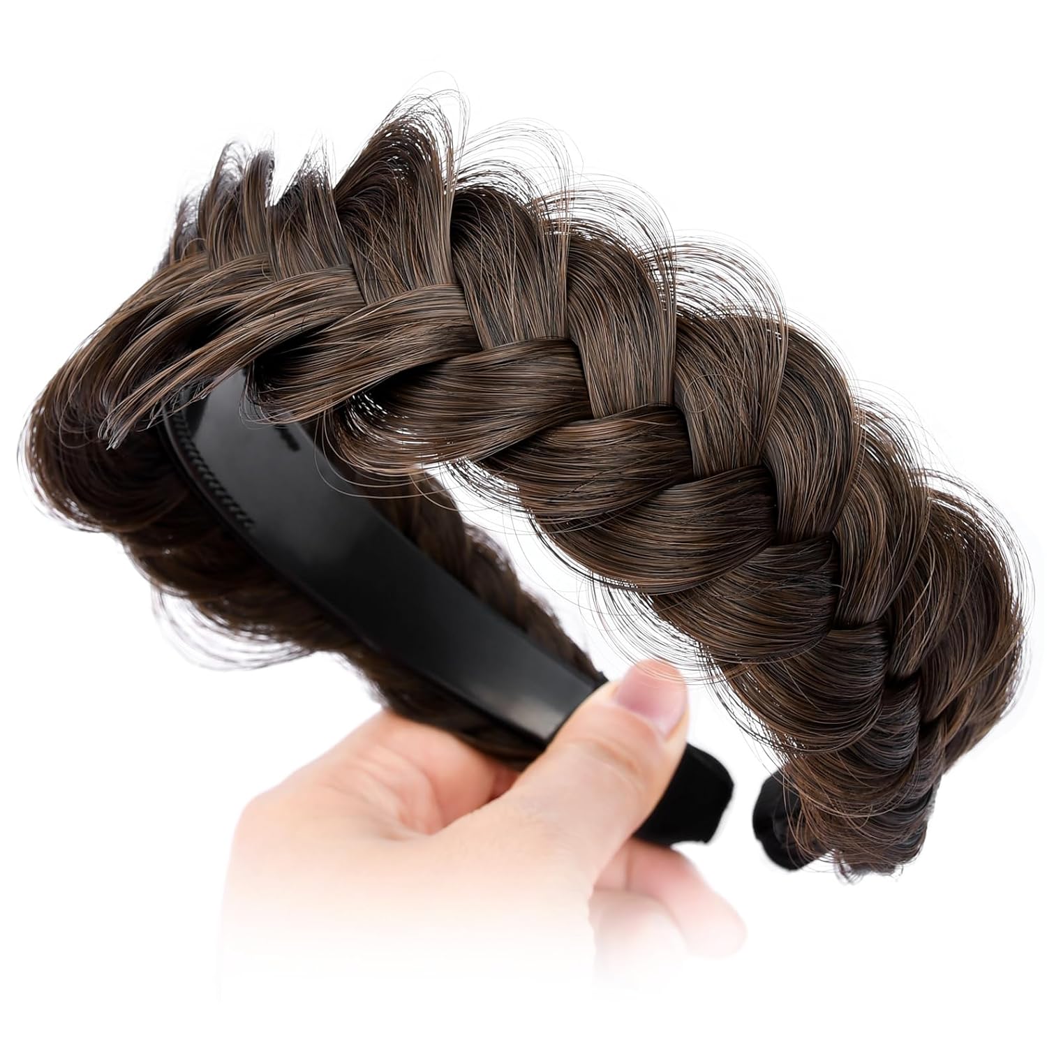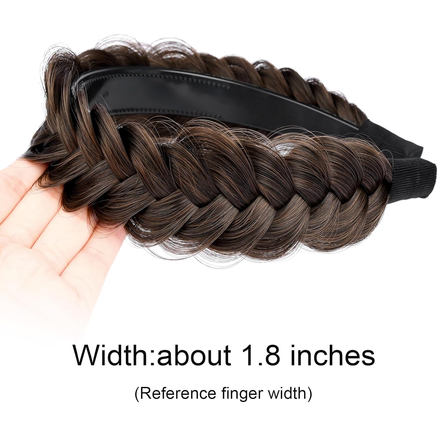 DIGUAN Wide Messy Braided Headband With Teeth Synthetic Hair Plaited Headband High Elasticity Braids Chunky Fishtail Braided Hair Band Hairpiece for Girls Women Beauty Accessory (Copper Brown)
