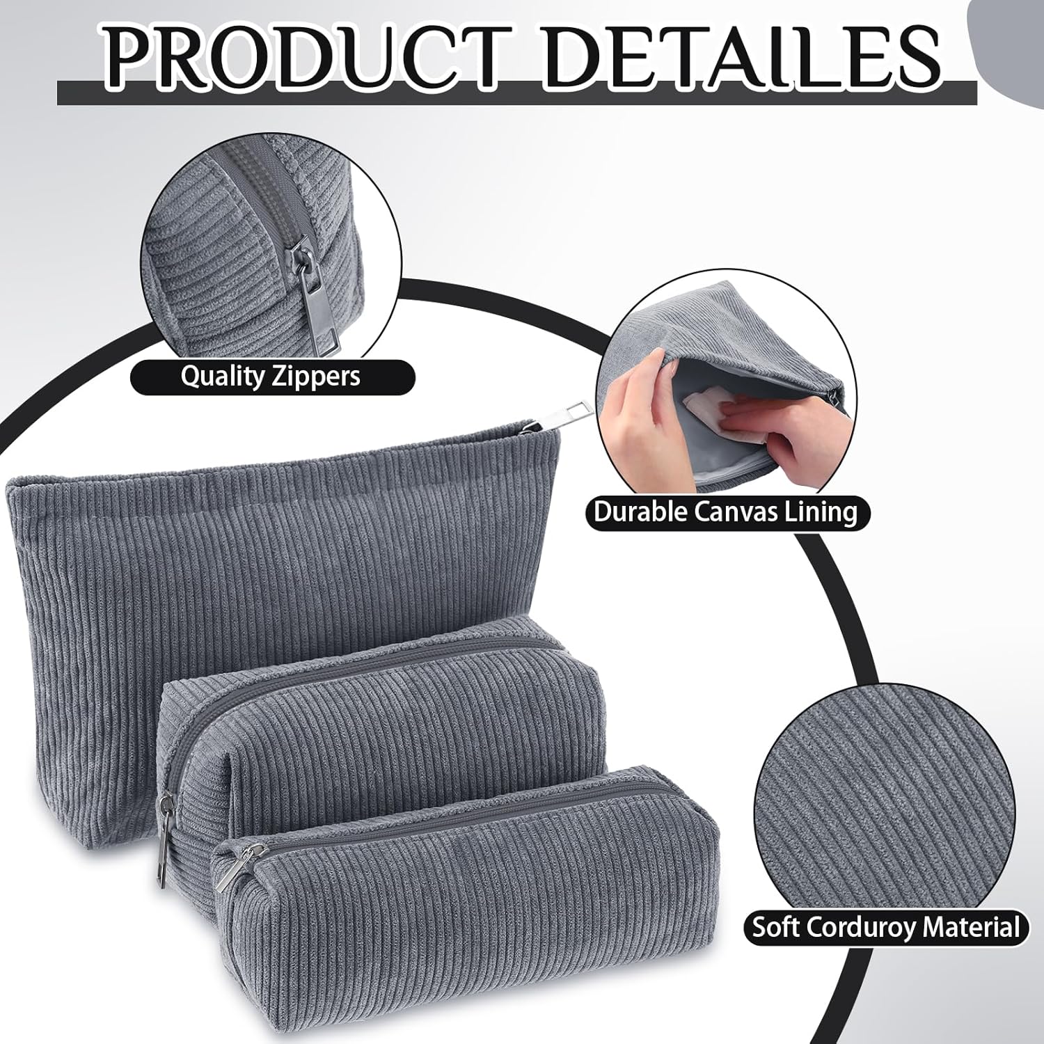 - Material and Attractive Design: the makeup and toiletry travel bag set is mainly crafted from quality corduroy material, ensuring high durability and prolonged service life; The bags feature a vibrant gray color surface, makes them compatible with various styles of outfits