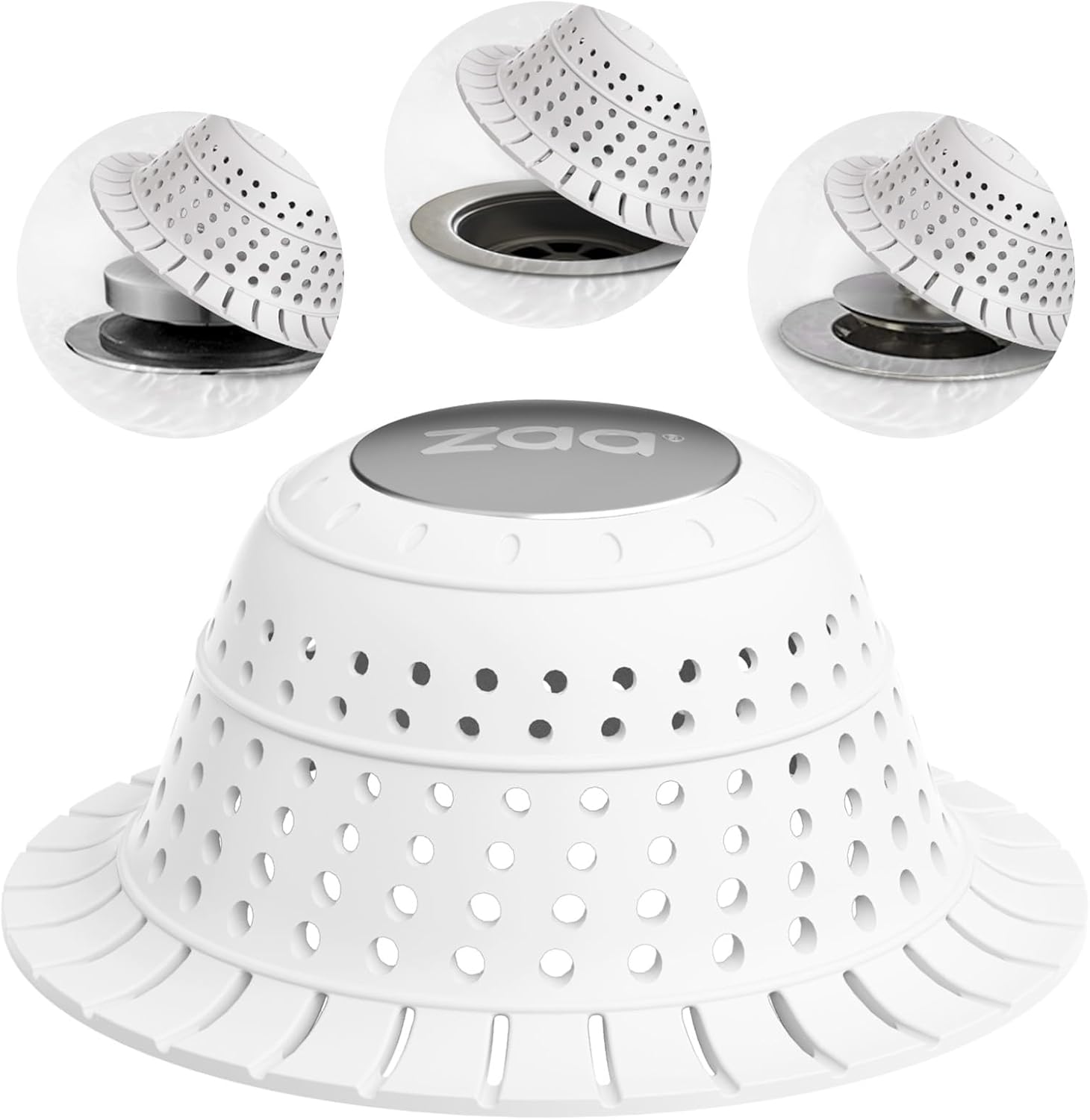 zaa Bathtub Drain Hair Catcher, Silicone Collapsible 1 Pack Drain Protector for Pop-Up and Regular Drains of Shower, Tub, Bathroom, Sink, Snow-White