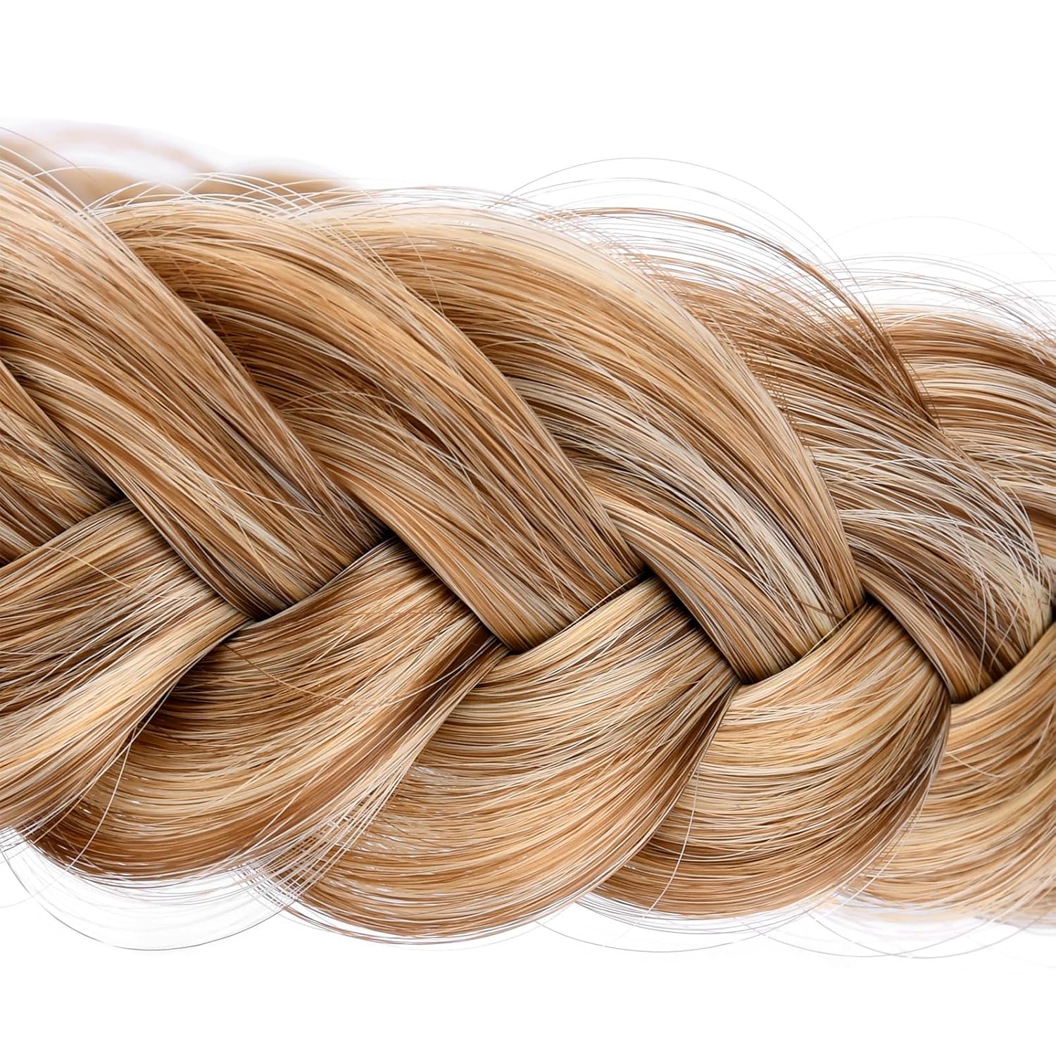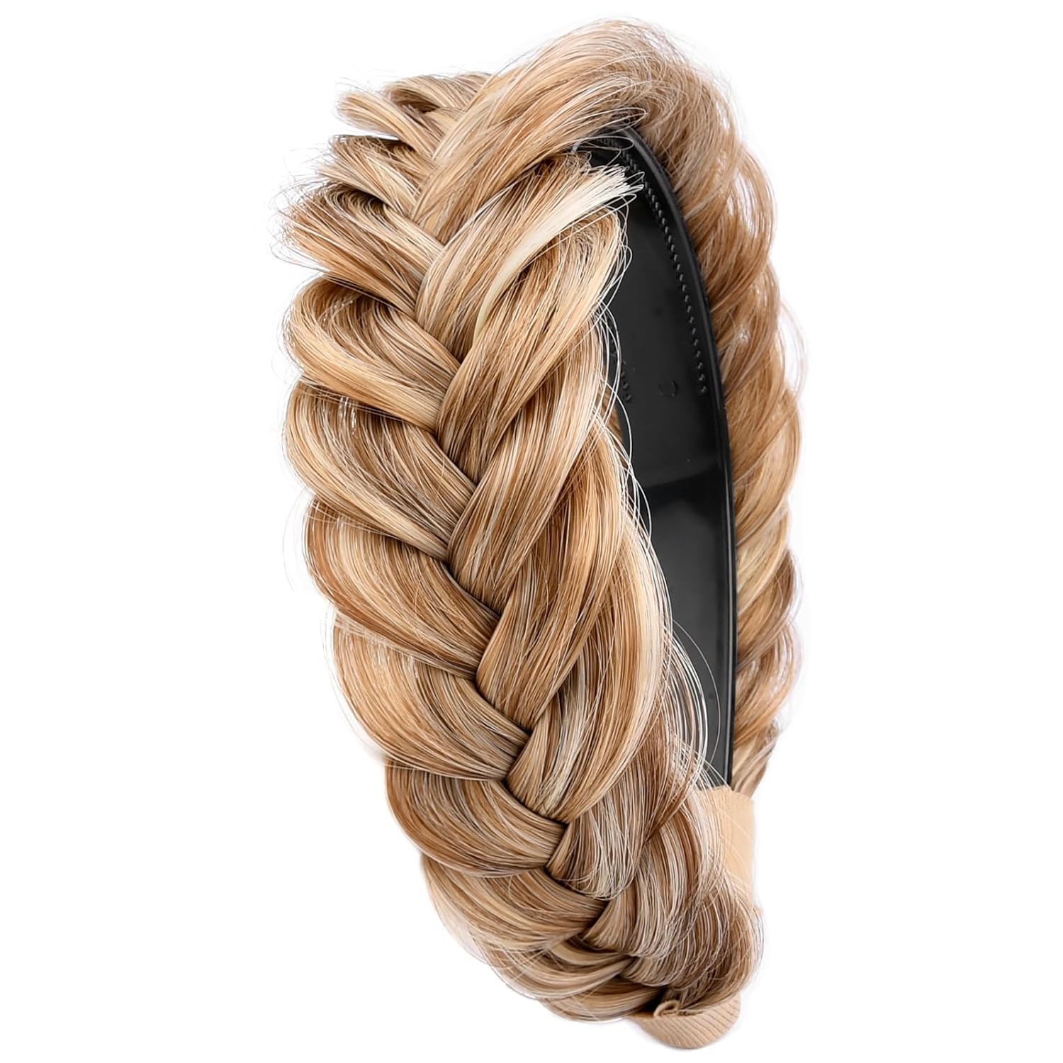 DIGUAN Wide Messy Braided Headband With Teeth Synthetic Hair Plaited Headband High Elasticity Braids Chunky Fishtail Braided Hair Band Hairpiece for Girls Women Beauty Accessory (Caramel Blonde)