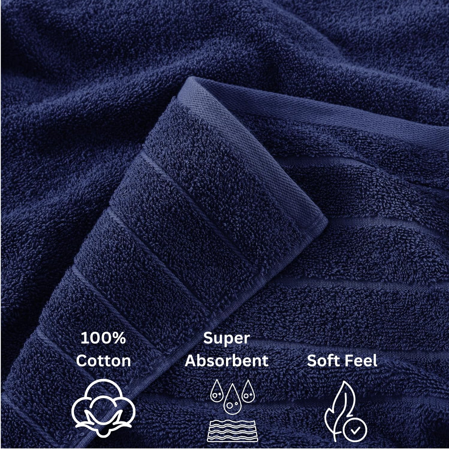 Casa Platino 100% Cotton Luxury Bath Towel Set - 18 Pieces - Ring Spun, Super Soft & Highly Absorbent - 6 Bath, 6 Washcloths, 6 Hand Towels for Bathroom - Holds Well After Multiple Washes - Navy Blue