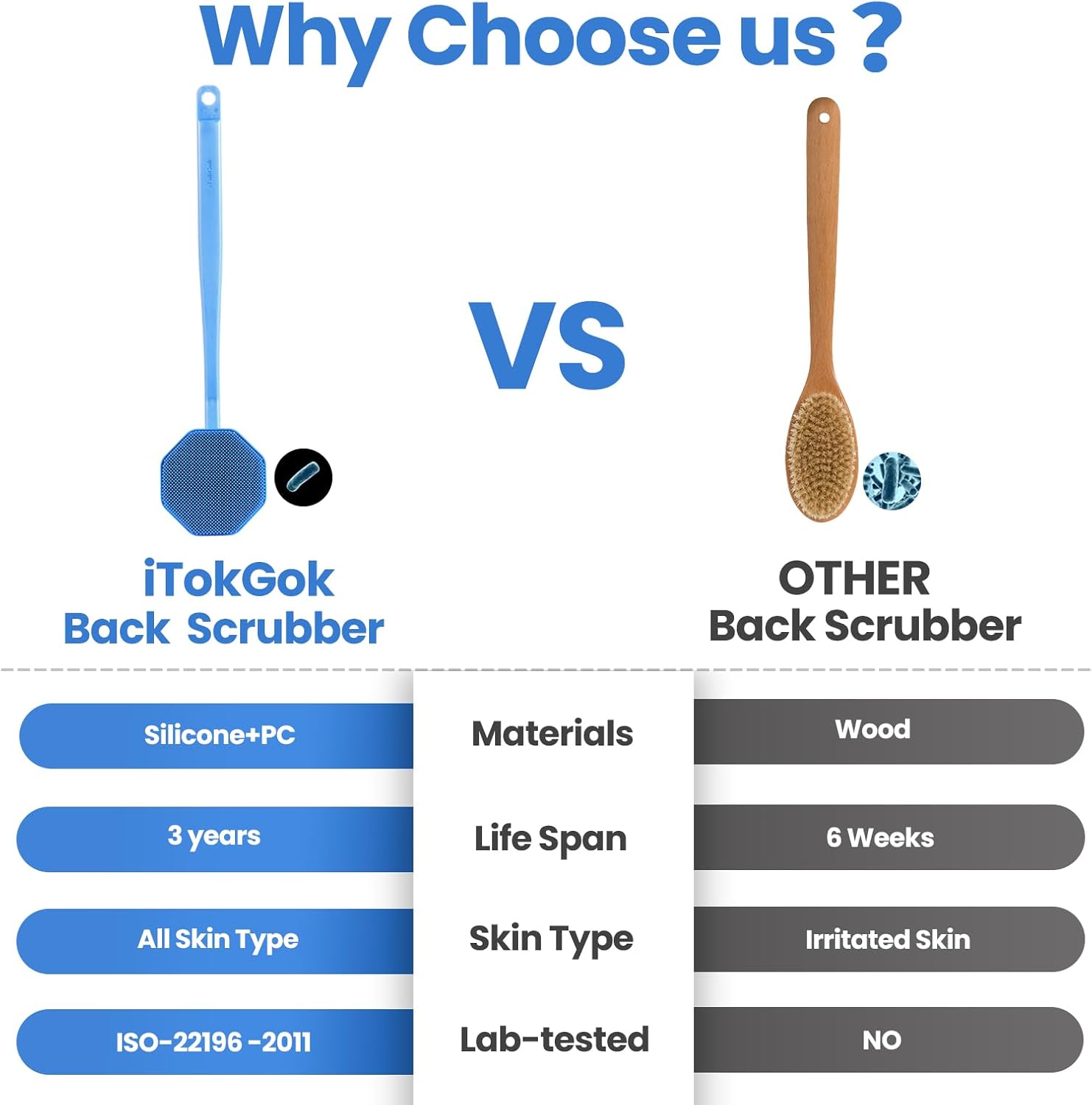 - Distinctive : Compared to other mediocre back scrubbers, ours features an extended design, an anti-slip handle, silver infused into food-grade silicone for a longer lifespan, and exquisite packaging, It is truly worth it.