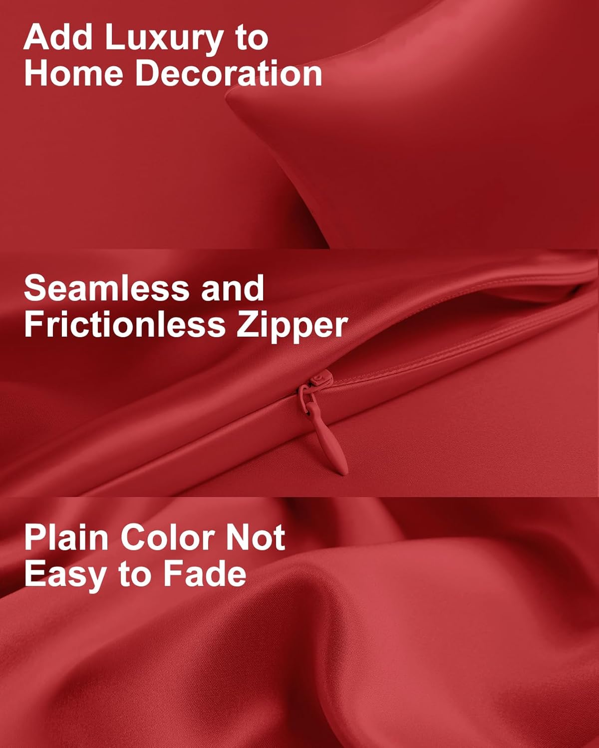 THXSILK Set of 2 Silk Pillowcase for Hair and Skin, 100% Mulberry Silk Bed Pillowcase Ultra-Soft, Hypoallergenic Soft Breathable Silk Pillow Case with Hidden Zipper, California King 20"x40", Red