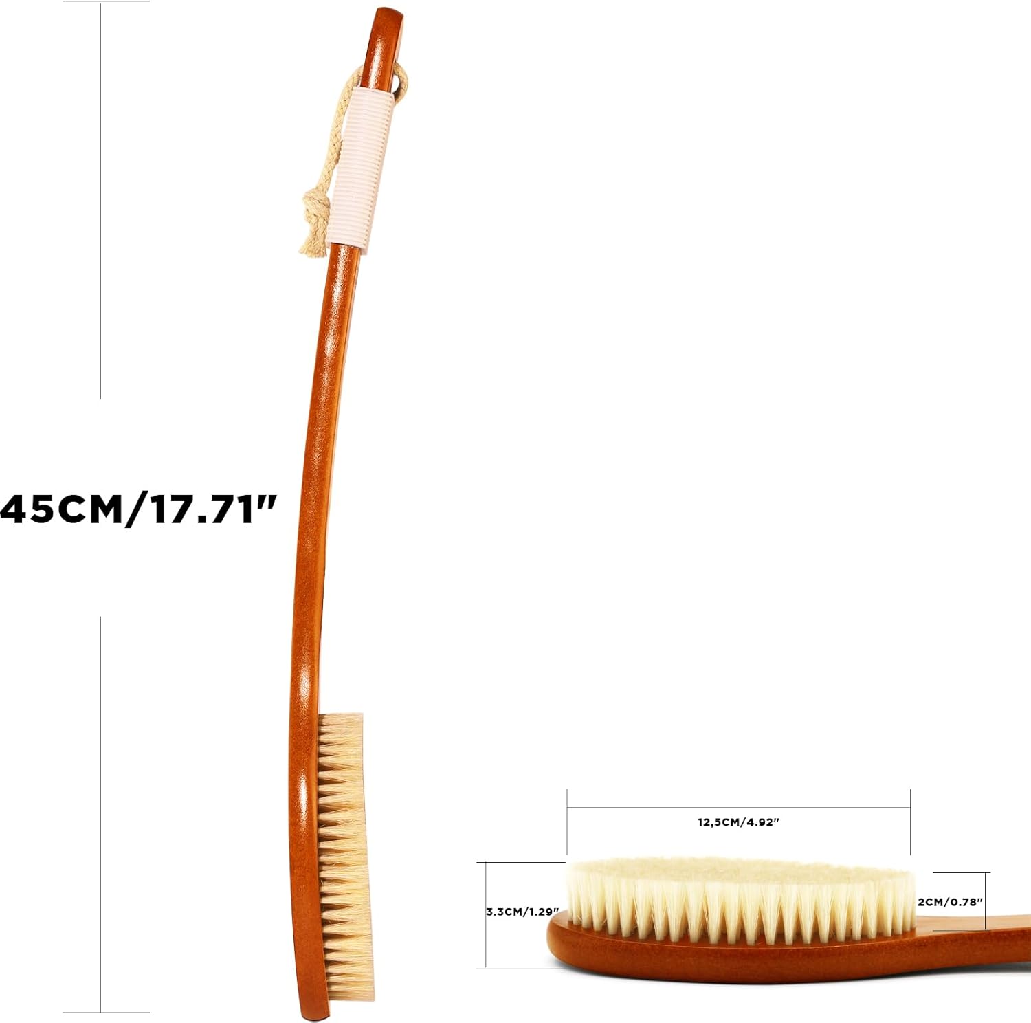 ICANdOIT-17.71Inch Natural Boar Bristles Anti-Slip Curved Long Handle Bath Brush,Bent Handle Shower Scrubber for Exfoliating,Shower Back Brush