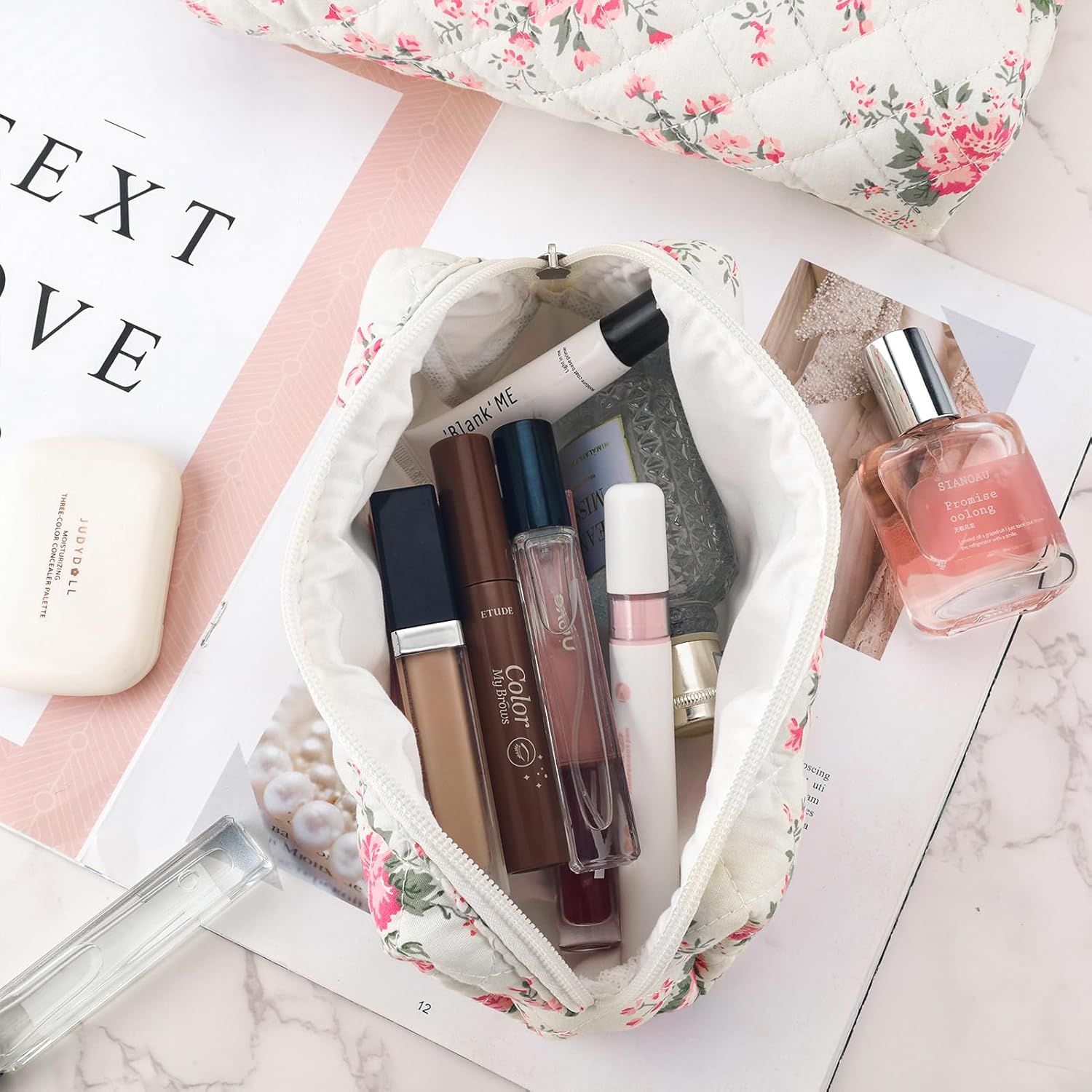 - VINTAGE TRENDY COTTON MAKEUP BAG:The cute quilted makeup bags are made of cotton material, lined with cotton fabric, and sewn on the outer layer. the cotton makeup bag's unique floral pattern design and color matching are novel and chic. so the soft makeup bag is ideal for carrying and using during travel. So the soft makeup bag is ideal to carry and use while traveling