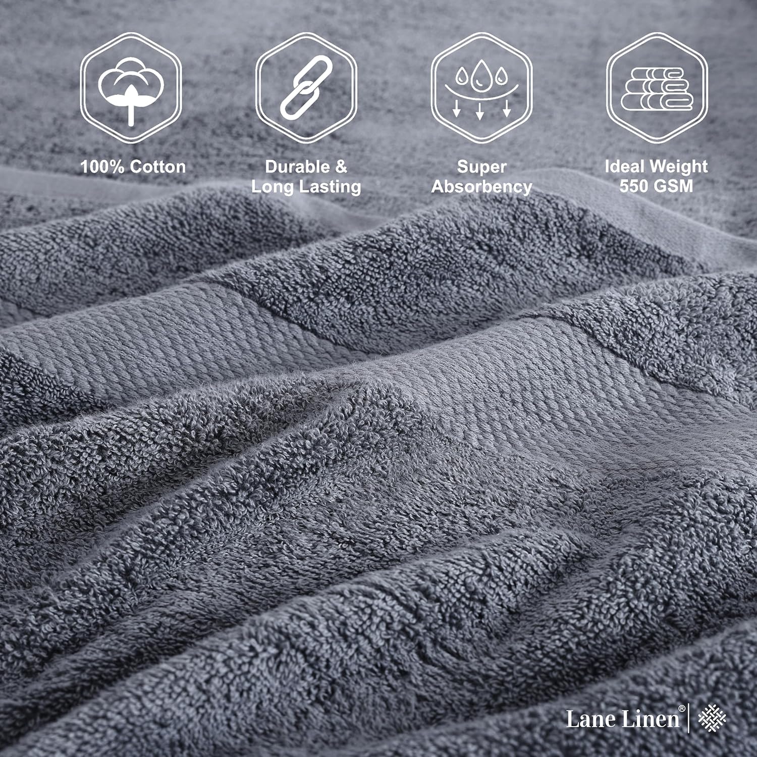 - Premium Quality: The LANE LINEN 100% cotton 4-piece bath towel set features ultra-soft, plush bath towels made from high-quality cotton, providing superior absorbency and comfort for your skin. Perfect for any bathroom.