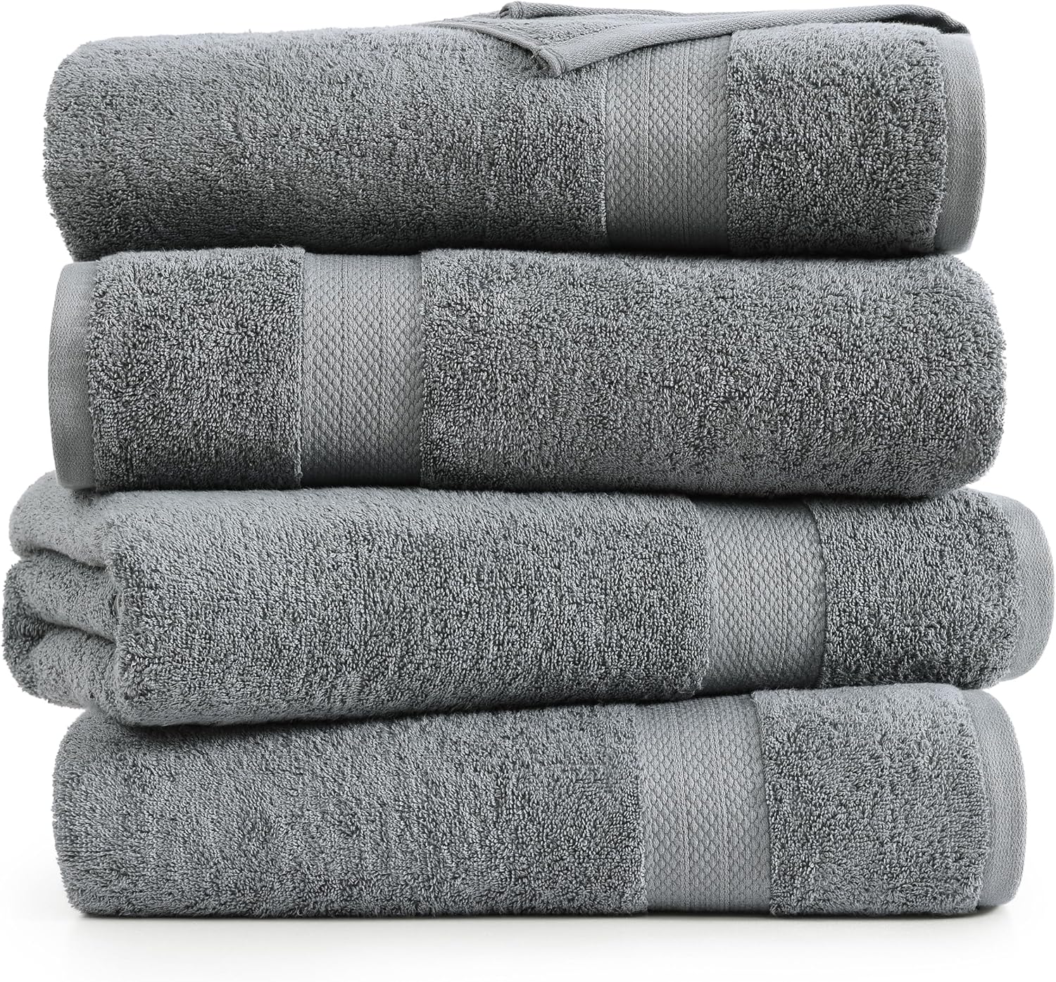 LANE LINEN 100% Cotton 4 Pack Bath Towels Set (28"x54") - Ring Spun, Large Cotton Towels for Bathroom - Quick Dry, Soft & Absorbent Bath Towel Set - Remains Soft After Multiple Washes - Cool Grey
