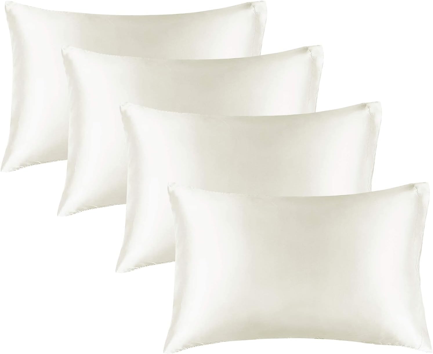 BEDELITE Satin Pillowcase for Hair and Skin, Super Soft Similar to Silk Pillow Cases 4 Pack with Envelope Closure, Cooling Pillowcases for Women Men (20"x40" King Size, Ivory)