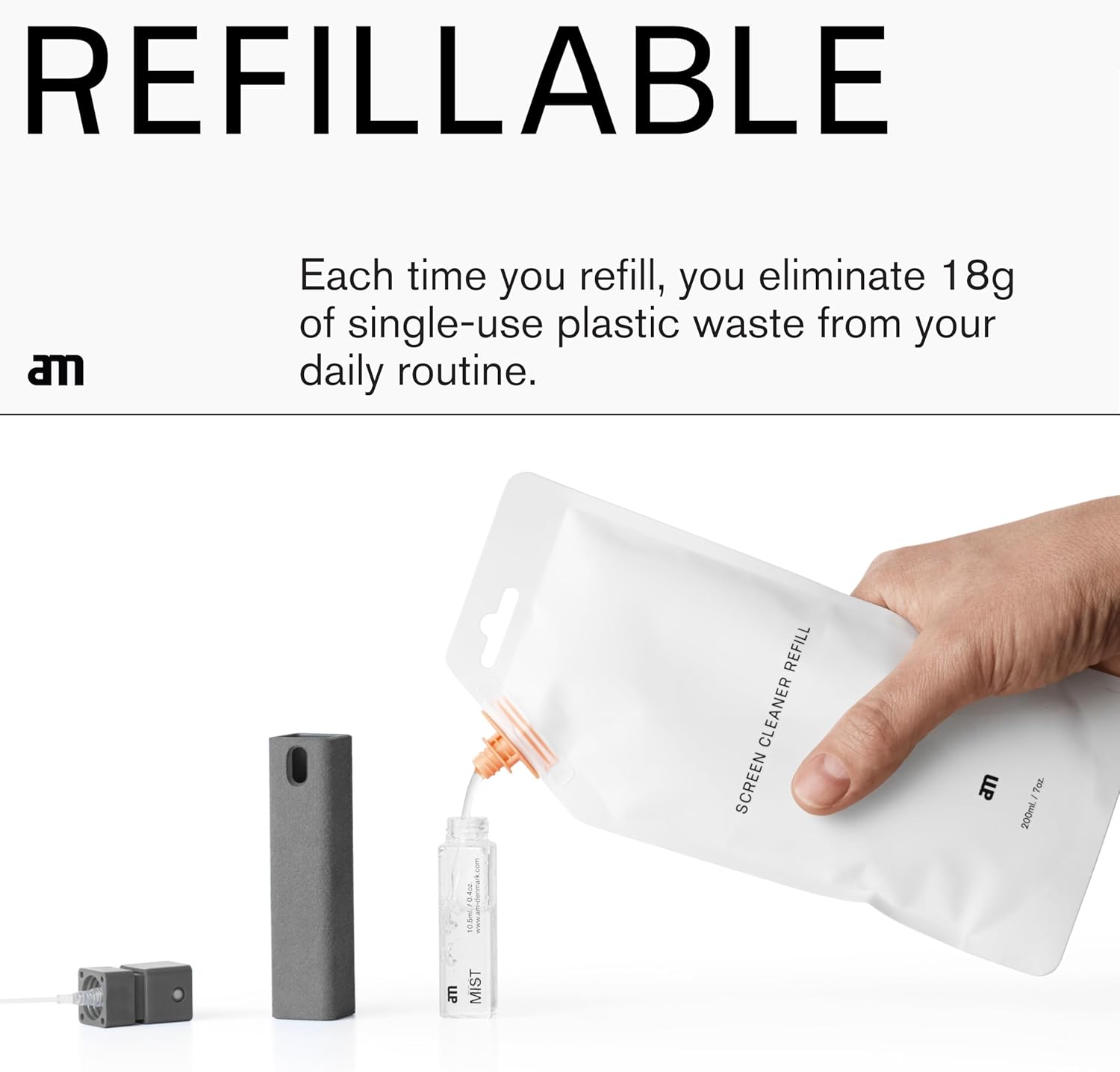 - π± REUSABLE & ECO-FRIENDLY β Skip the waste. This mist spray cleaner is refillable and reusable, supporting sustainable screen care without compromise.