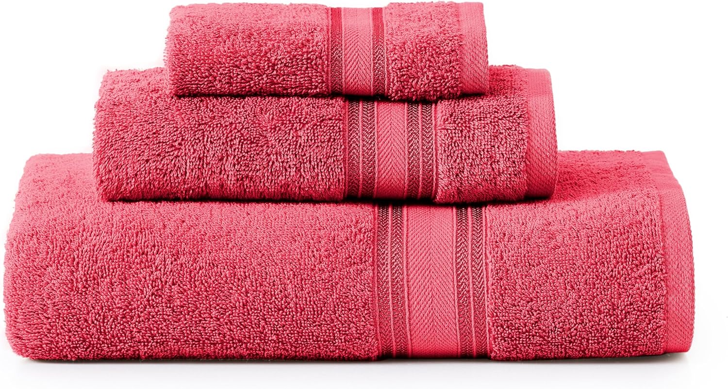 LANE LINEN Luxury Bath Towels Set - 3 Piece Set, 100% Cotton Bathroom Towels, Zero Twist, Quick Dry Towels, Absorbent Bath Towel, Super Soft, 1 Bath Towel, 1 Hand Towel, 1 Wash Cloths - Honeysuckle