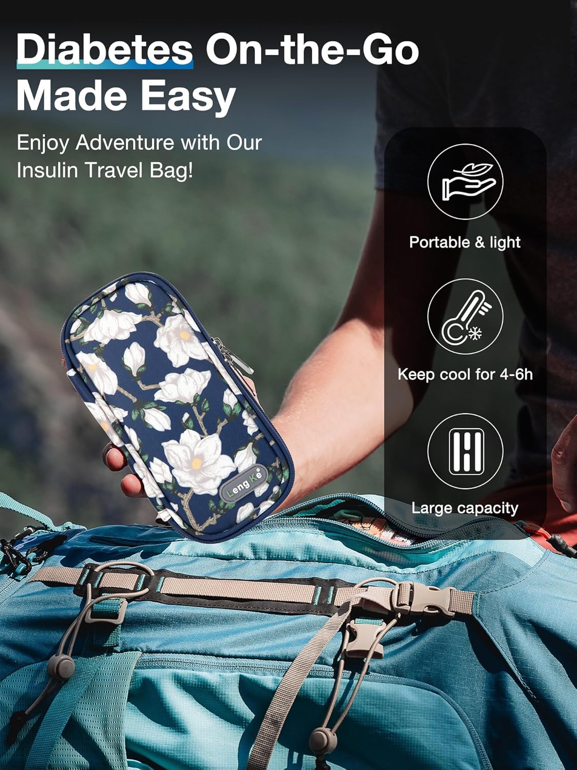 - Leng Ke Insulin Cooler Travel Case TSA Approved for Diabetics - Your Travel Companion! Upgraded Cooling Effect: This diabetic travel case comes with two upgraded ice packs each weighing 65g. The insulin cooler can maintain your diabetic supplies at a suitable temperature for 4-6 hours, after being frozen for 8-12 hours. This diabetic supply bag provides enough cooling time for a stress-free short trip.