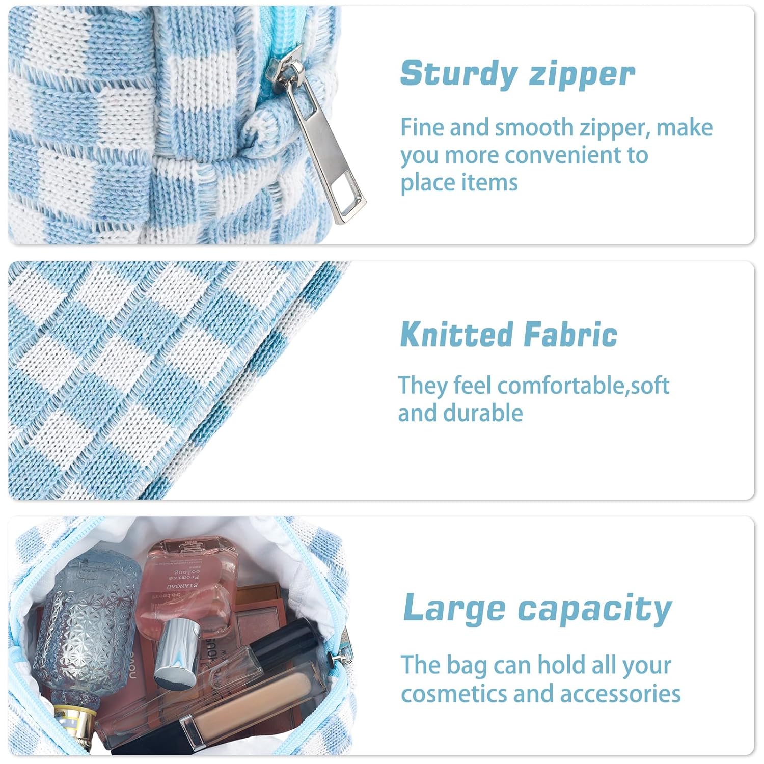 - LIGHT WEIGHT AND EXCELLENT WORKMANSHIP: The cute makeup pouch is made of soft knitted fabric and is comfortable, soft and lightweight. Checkered travel make up bag folds up when not in use and fits in a large bag without taking up space. The metal zipper of the cute pencil case keep your items secure and organized inside. Cosmetic bag accessories set for women